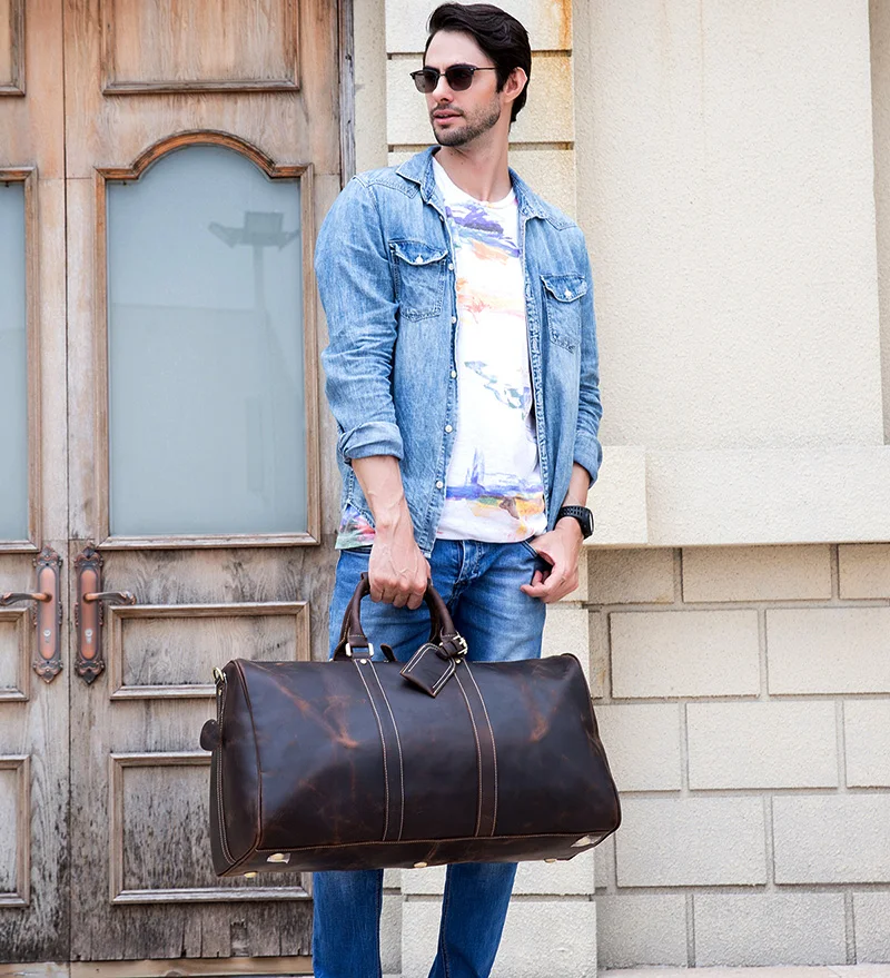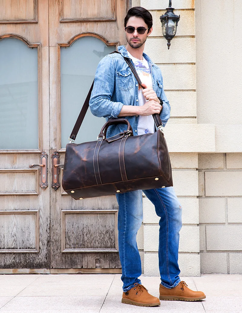 Сумка Luufan мужская из натуральной кожи, вместительный саквояж для путешествий, винтажный чемодан из кожи Крейзи Хорс, ранец для выходных
