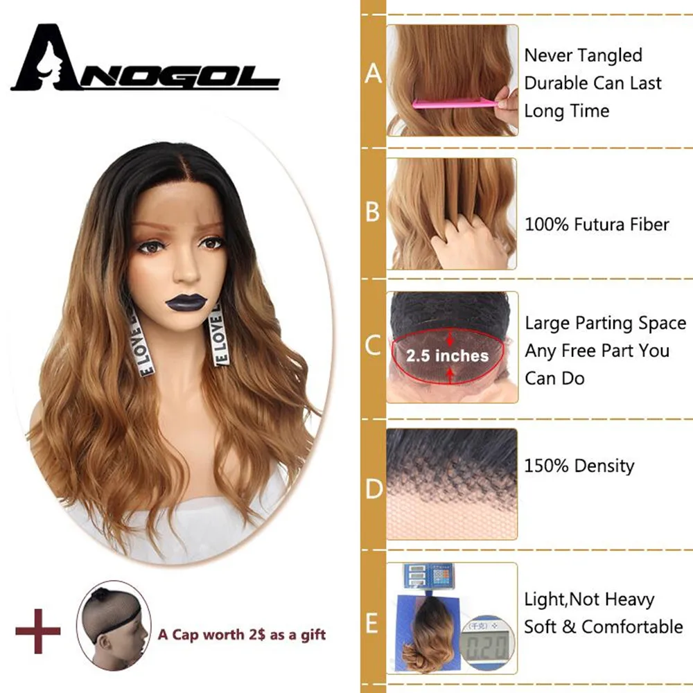 Аногол черный Омбре коричневый длинный объемный волнистый Futura парики синтетический кружевной передний парик для американских женщин