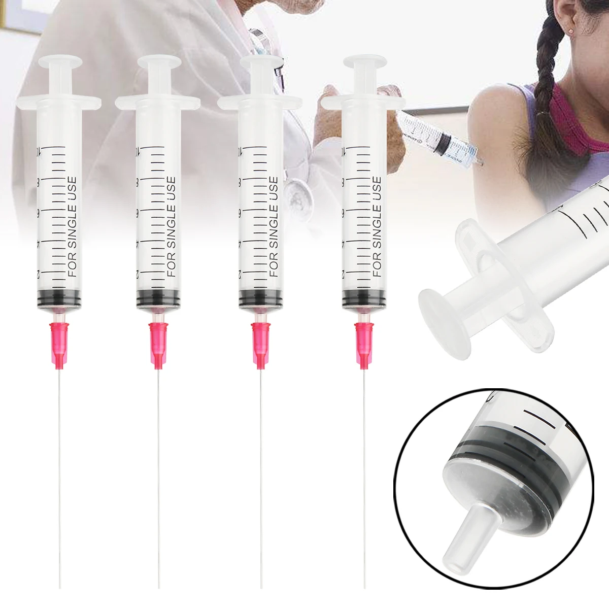 Пластиковый шприц Mayitr, 5 шт. в упаковке, 10 мл, с иглой 14 ga 1,5 дюйма из нержавеющей стали с тупым наконечником и 5 прозрачными наконечниками
