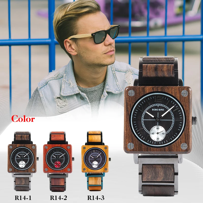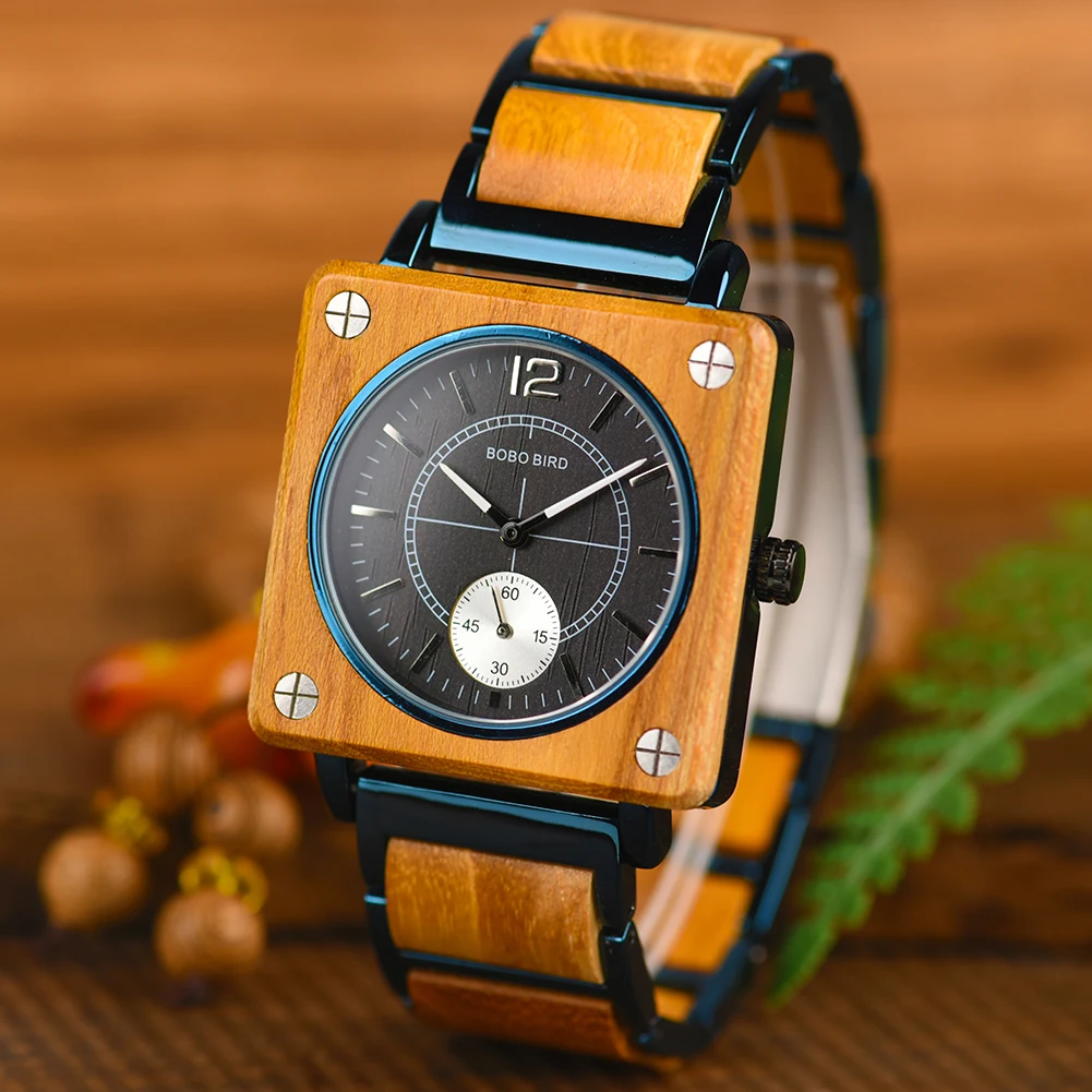 Марке де люкс БОБО птица деревянные Мужские квадратные кварцевые ча...