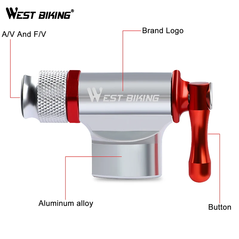 Насос велосипедный, WEST BIKING, углекислотный, из алюминиевого сплава