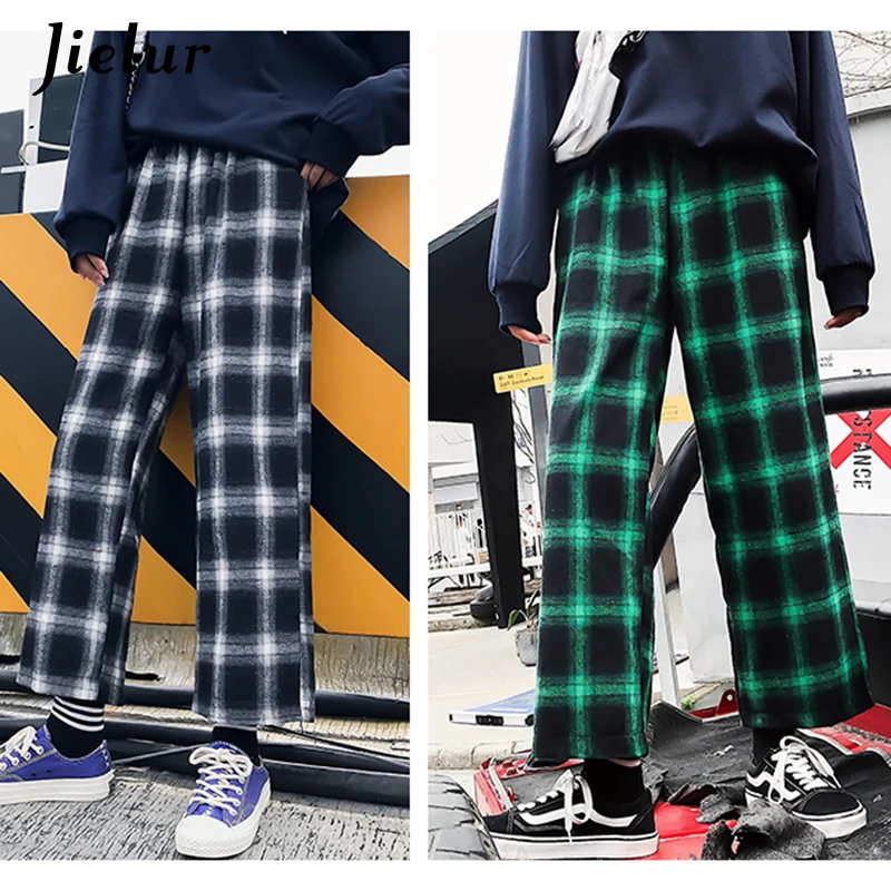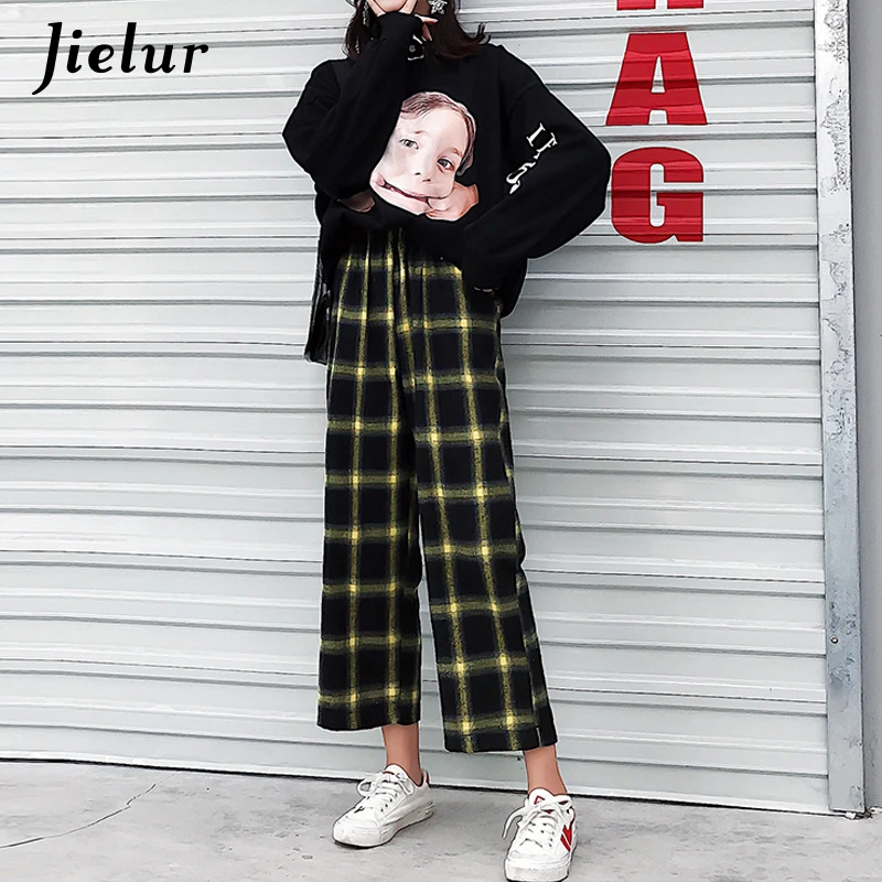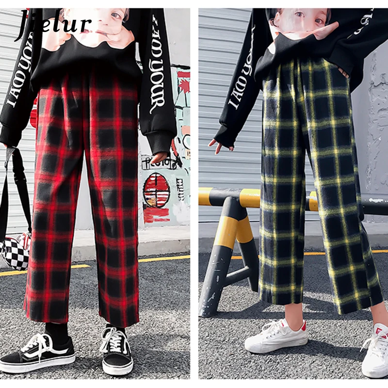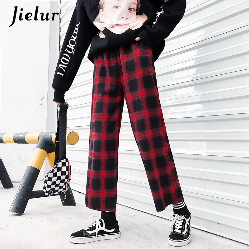 Женские широкие брюки Jielur Ulzzang, черные брюки в клетку, в стиле хип-хоп, в Корейском стиле, 2021, M-XL