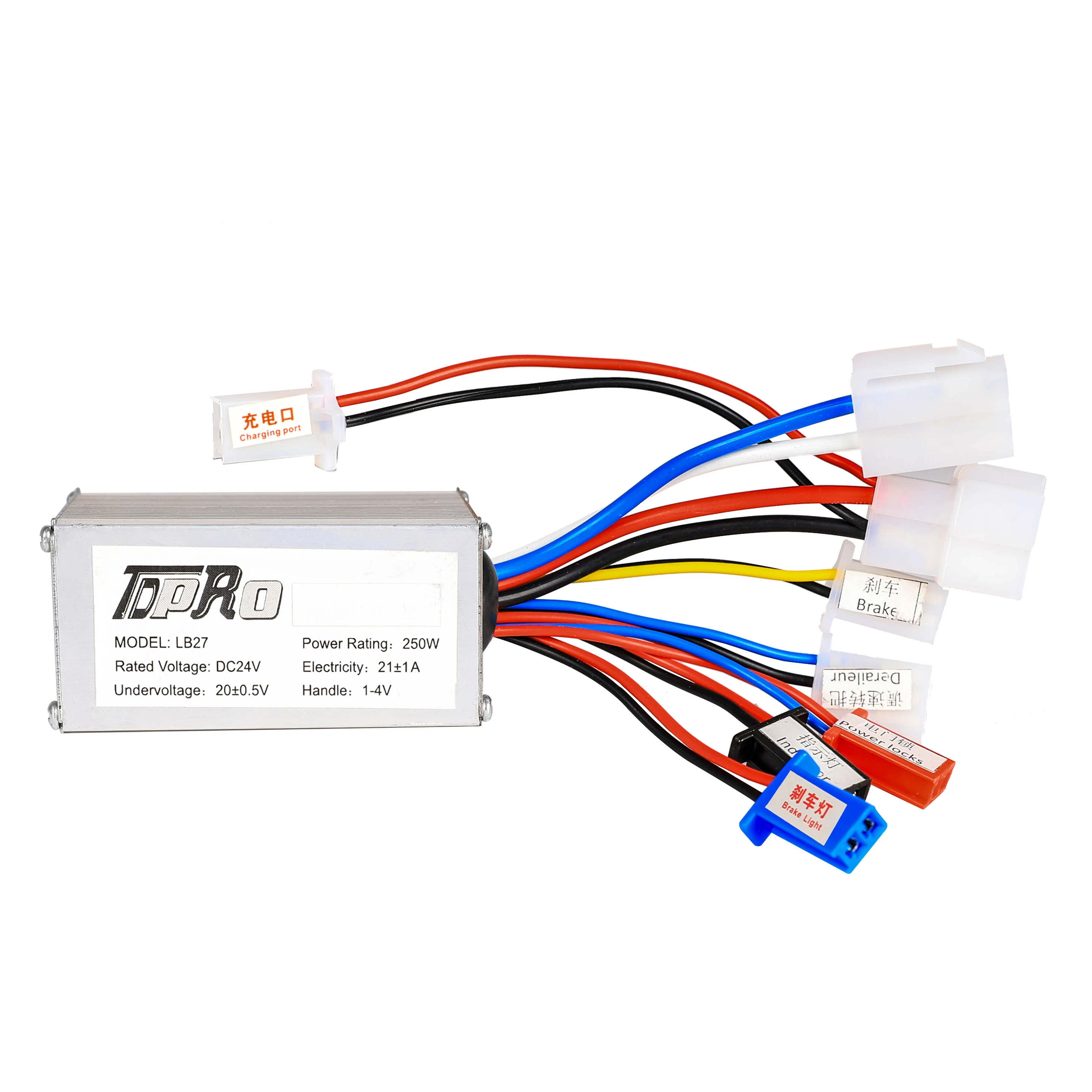 24v 500w Входное напряжение: 24 вольт Номинальная мощность: 500 Вт В соответствии с Напряжение защиты: 20V ± 0,5 V Ограничение тока: 28 ± 1 А Полезный Мотор: 24 В 500 Вт Регулятор скорости 1-4 в (дроссельная заслонка) Условия эксплуатации: -25 -- 45 Функция: Этот товар подходит для электрического велосипеда и скутера Это Контроллер щетки двигателя. Стандарт Вилки: 1. Красный и черный (большой кабель): соединения аккумуляторов 2. Желтый и синий: соединения двигателя 3. Красный и синий: клавишный переключатель (Блокировка питания) (Если нет дверных замков, красное соединение с синим) 4. Желтый и черный: тормоз 5. Красный и желтый: стоп-светильник 6. Обувь черного и красного цвета (маленький кабель): индикатор светильник 7. Красный, черный и синий: регулятор скорости 1-4 в (дроссельная заслонка) (Красный: + 5 В, черный: - , синий: сигнальный провод) 8. Красный и черный (маленький кабель): зарядное устройство
