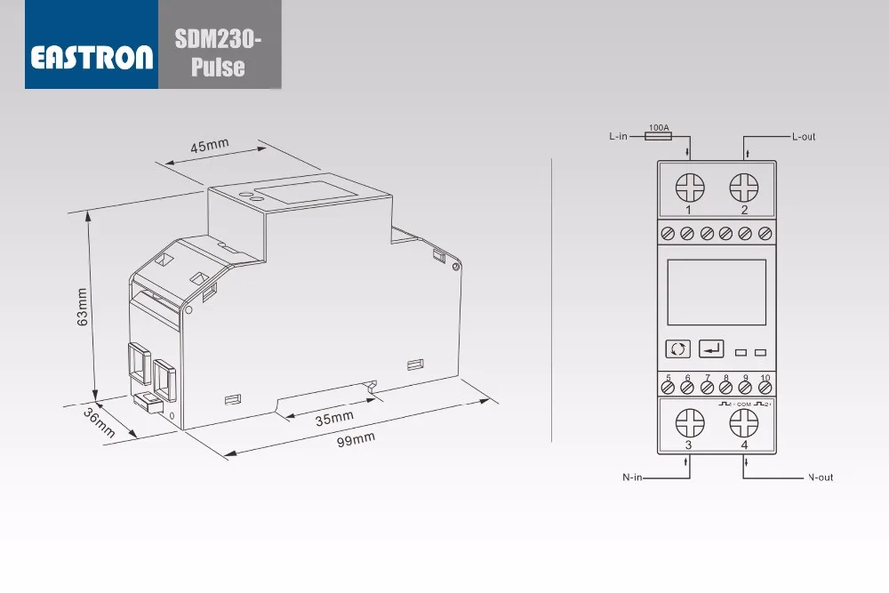 SDM230 импульс, 230 В 10(100)A, однофазный многофункциональный измеритель энергии, импульсный выход без MID