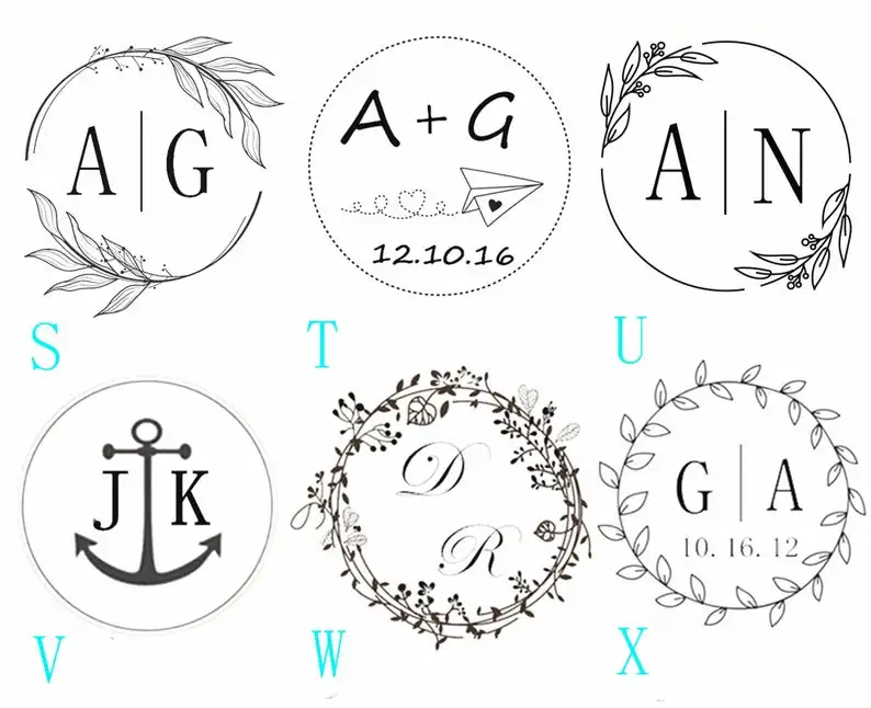 Индивидуальные Самоклеящиеся восковые наклейки с венком и двумя инициальными восковыми штампами, индивидуальные наклейки для свадебных приглашений, 25 цветов