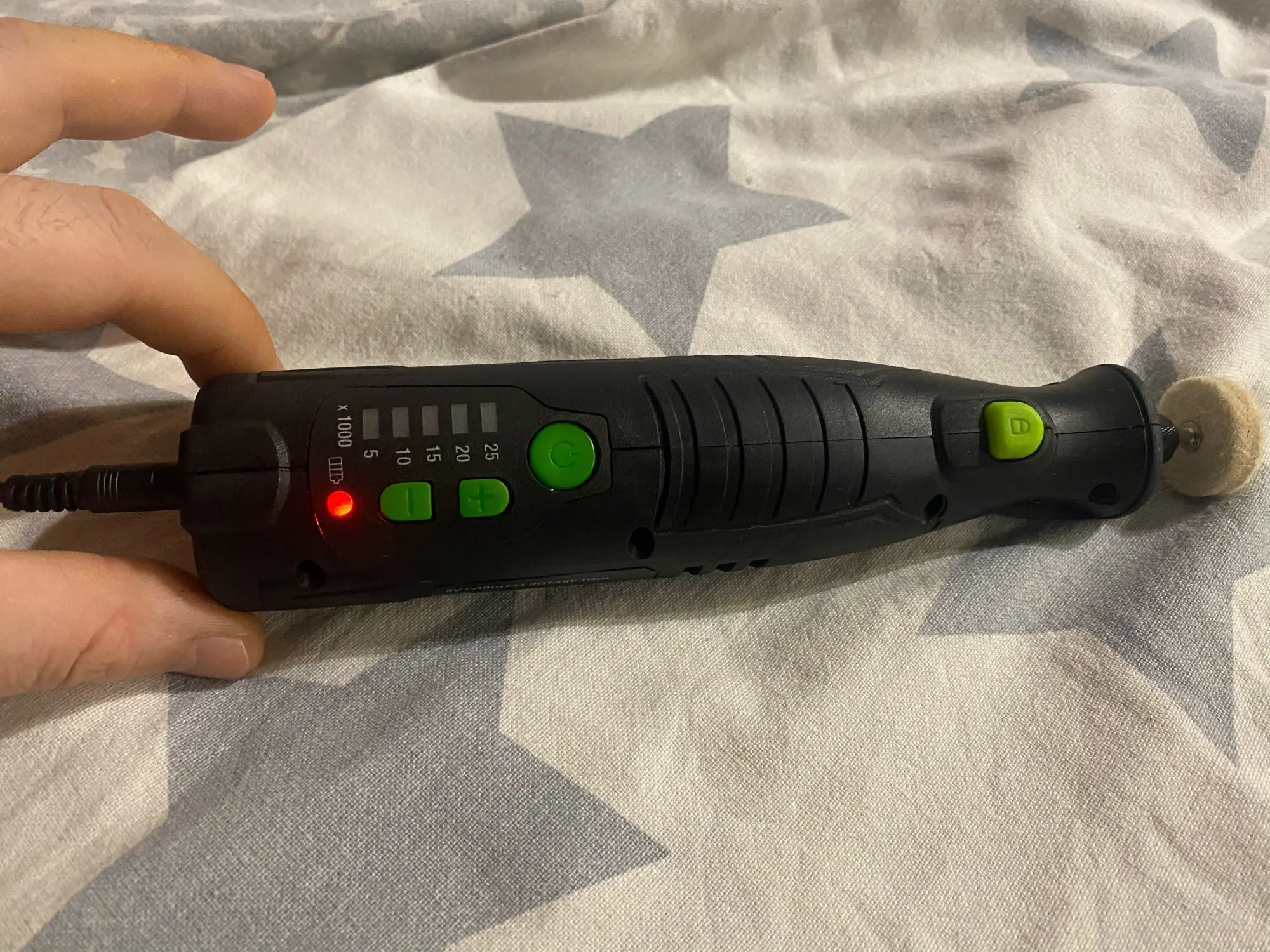 Снижаю бал за то,что продавец высылает посылку не с полным набором оснастки. Одной коробки не было. Также при работе дремель издает не понятный шум, то ли подшипник вала,то ли щетки,хз. Продавец говорит,что это нормально,черт его знает. В остальном не плохая машинка за свои деньги,брал за 1990р. Подсветка работает,движок довольно бодрый,на первой скорости довольно трудно остановить вал,на более высоких жжет пальцы,на максимуме не пробовал,пальцы важнее)) За немкомплект продавец сделал скидку 3$ на другой заказ. Защита двигателя срабатывает часто, что немного бесит. Можно использовать инструмент только как гравер,пилить замучаешься. Брал собственно ради этого и отпилить по мелочи на улице чего,в авто например или еще где. Коробка мятая,на подарок лучше не брать. В РФ есть похожий,от Bort,на озоне стоит примерно 2400,может даже стоит лучше его взять,жаль увидел поздно.