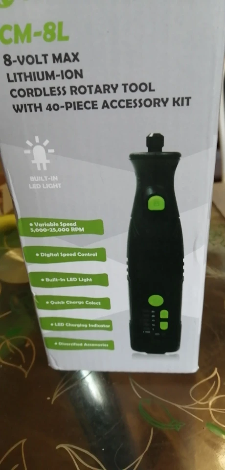 Прибыл без ящика для хранения инструментов и компонентов, инструмент в основном работает и скорость поворота хороший выбор. Мы будем видеть долговечность продукта