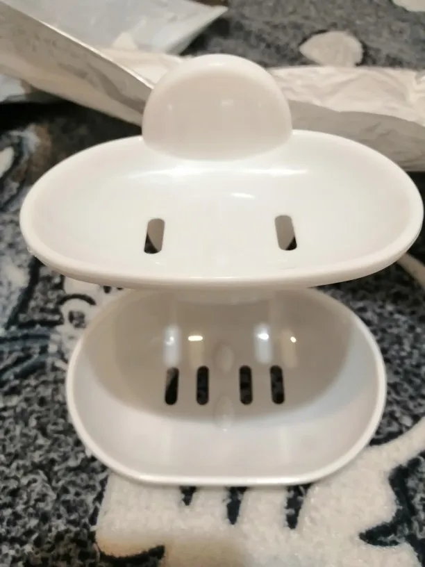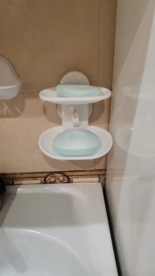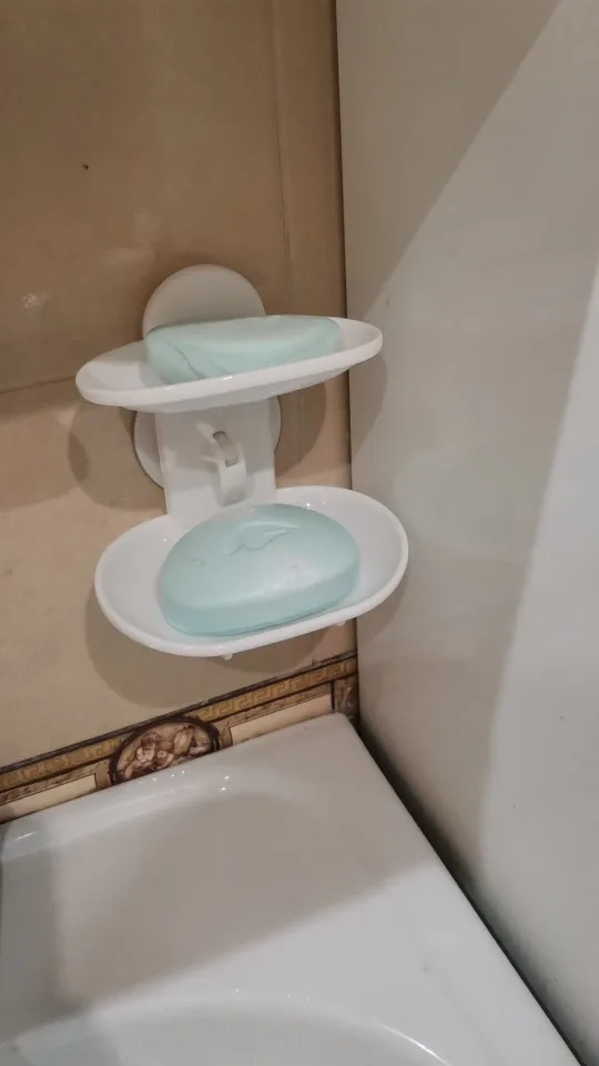 Суперская мыльница. Верхняя немного меньше нижней. Присоска намертво к кафелю прилипает. Само качество пластика хорошее. Рекомендую