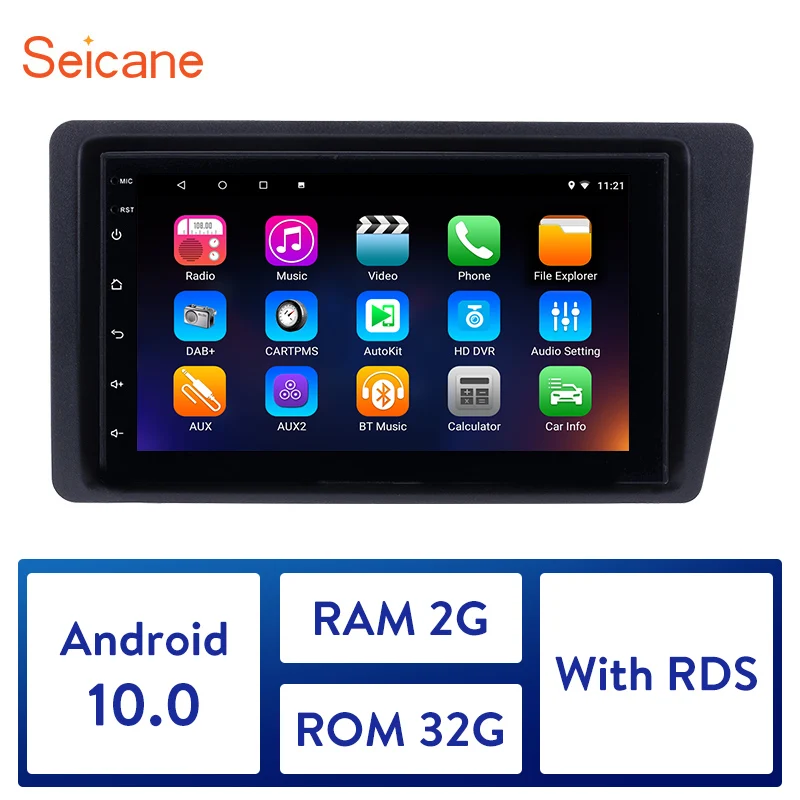 Автомагнитола Seicane, мультимедийный плеер 2DIN, 7 дюймов, Android 10,0, четырехъядерный, GPS, для Honda Civic 2001, 2002, 2003-2005, поддержка Bluetooth, Wi-Fi