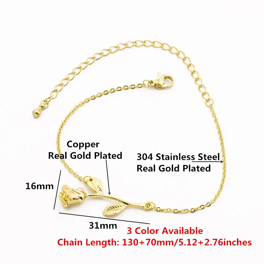 Оптовая продажа, 10 шт, браслет с розами, очаровательные Женские Романтические ювелирные изделия, подарок матери, браслет-цепочка из нержавеющей стали