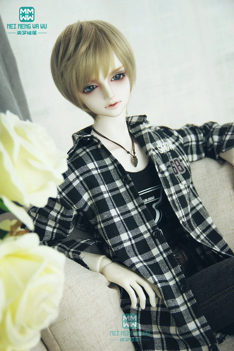 BJD кукольная одежда для 60-70 см, черно-белая рубашка в клетку, жи...