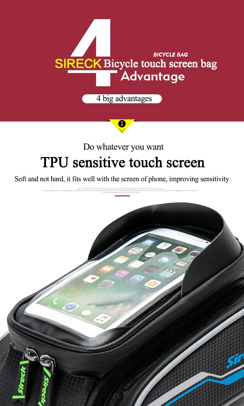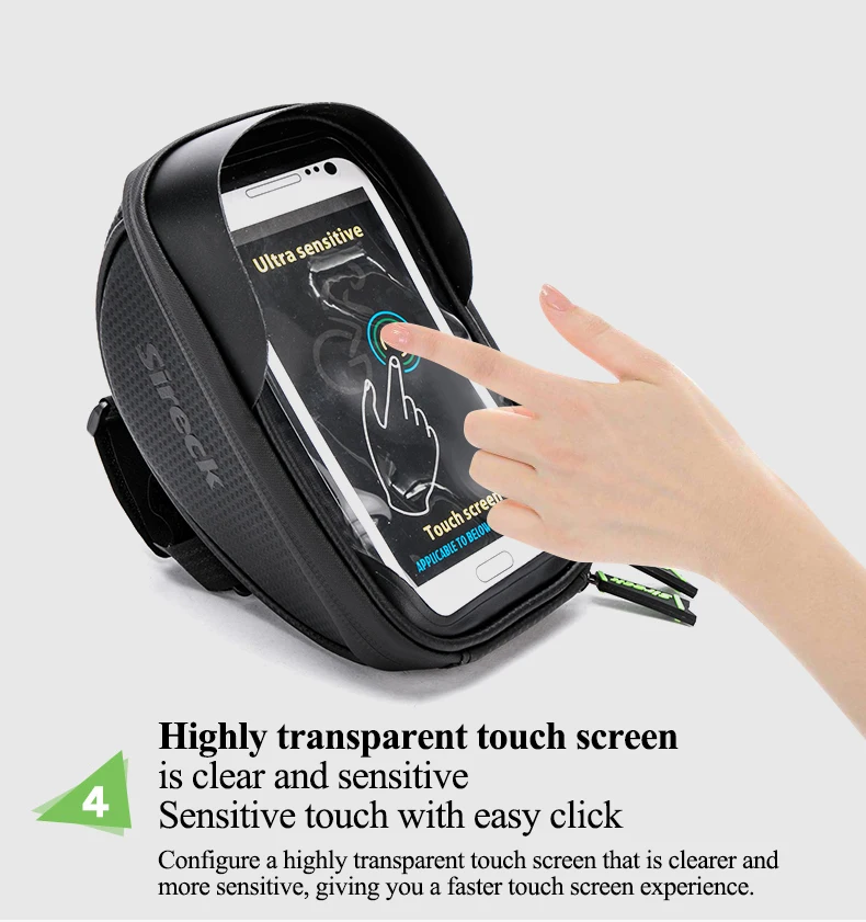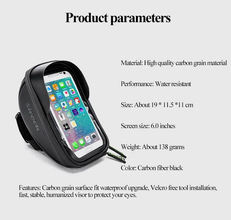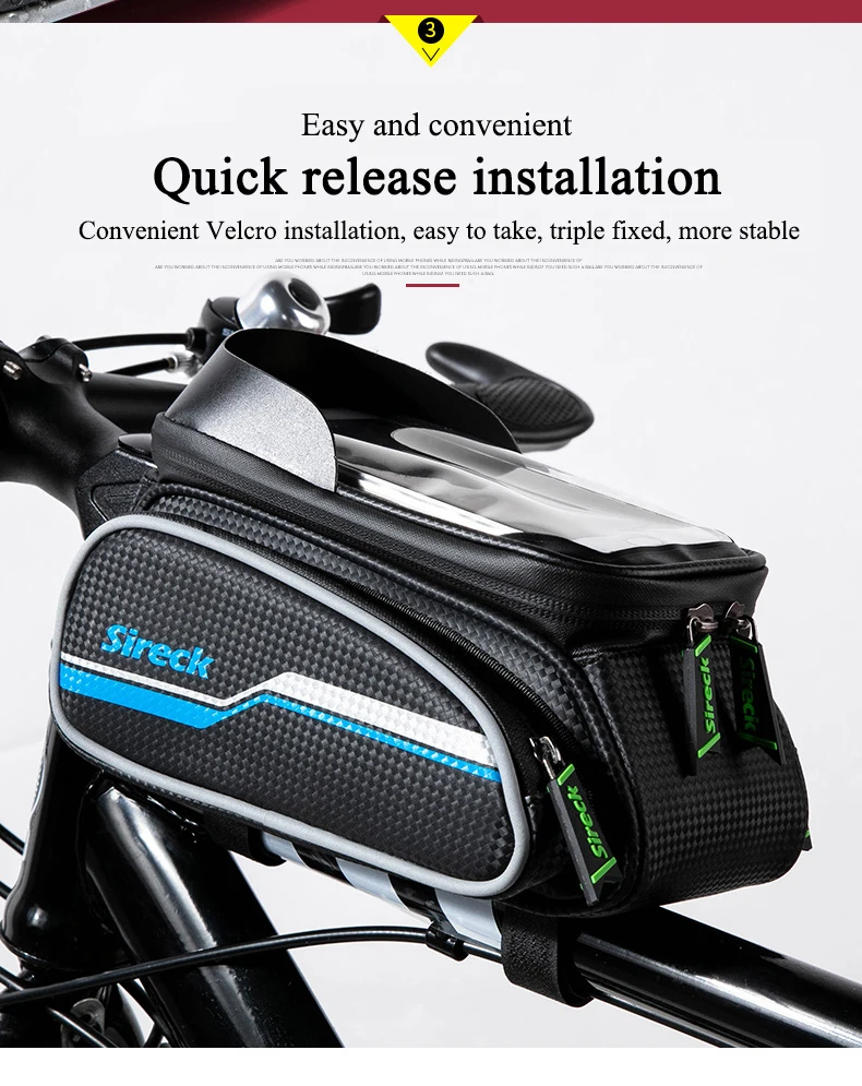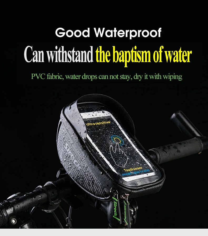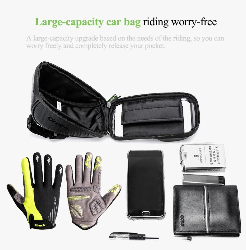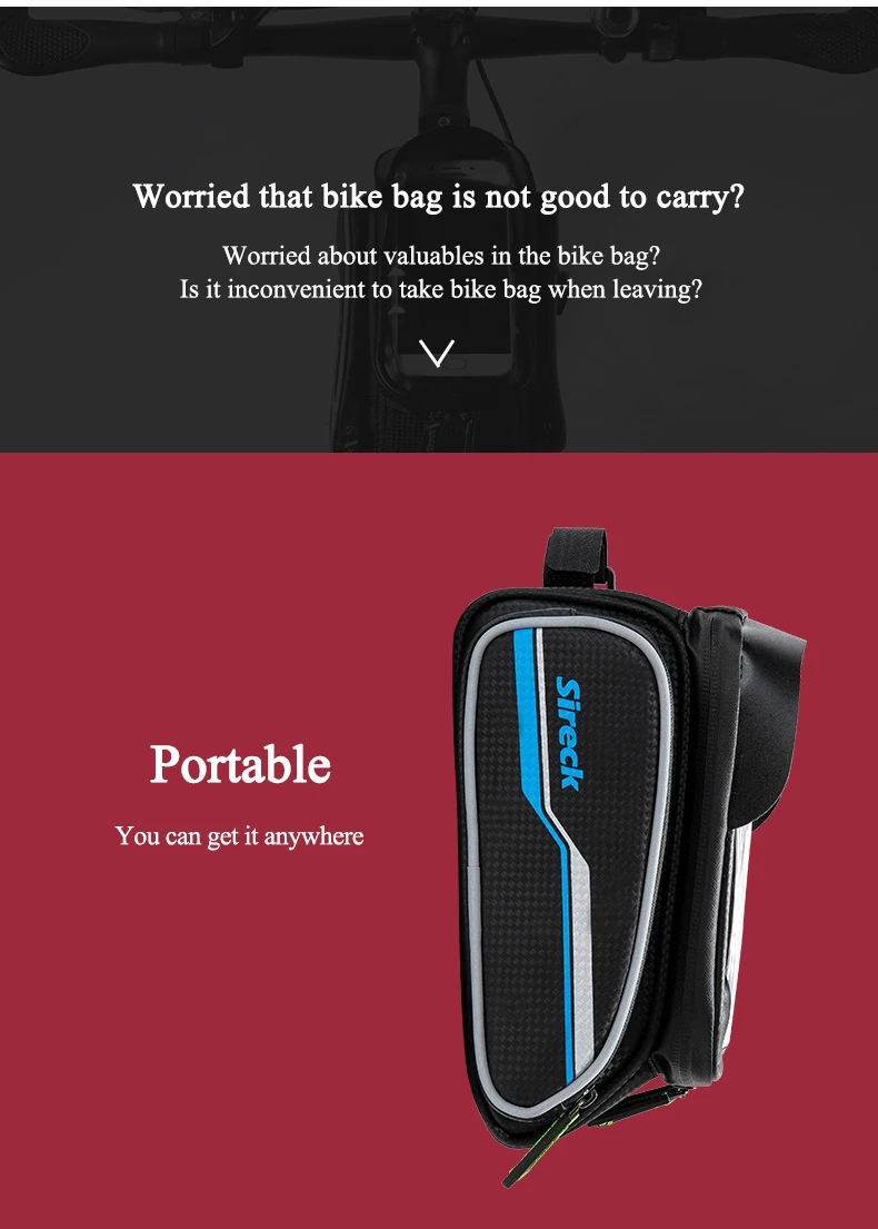 Generally good ohone bag. A lot of space, got in 20000mah powerbank with 3usb connectors. + fit to phone with screen 6.5"(Huawei mate 20pro) - front of bag may get worn quick if put front strap too tight. Handlebar fittings rubbing against bag. Need to create spacer, between bag and post.