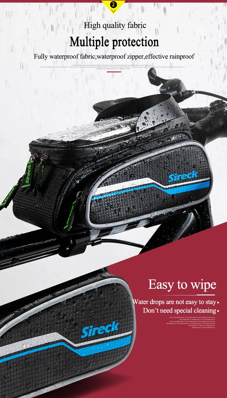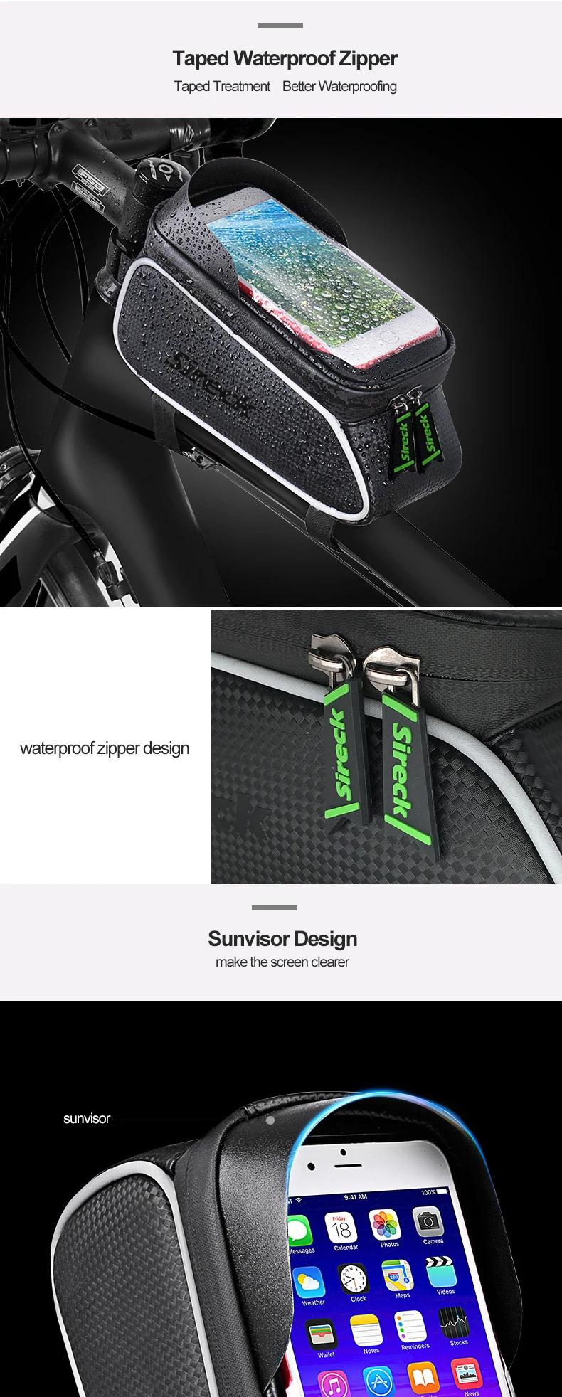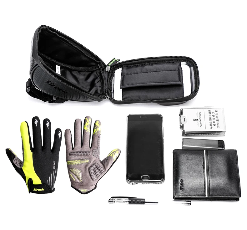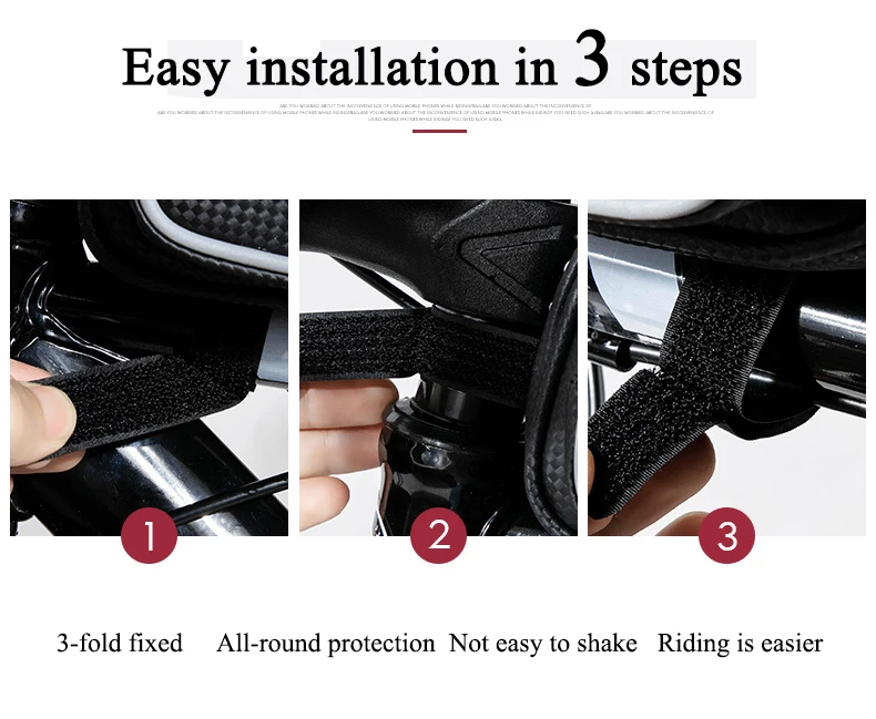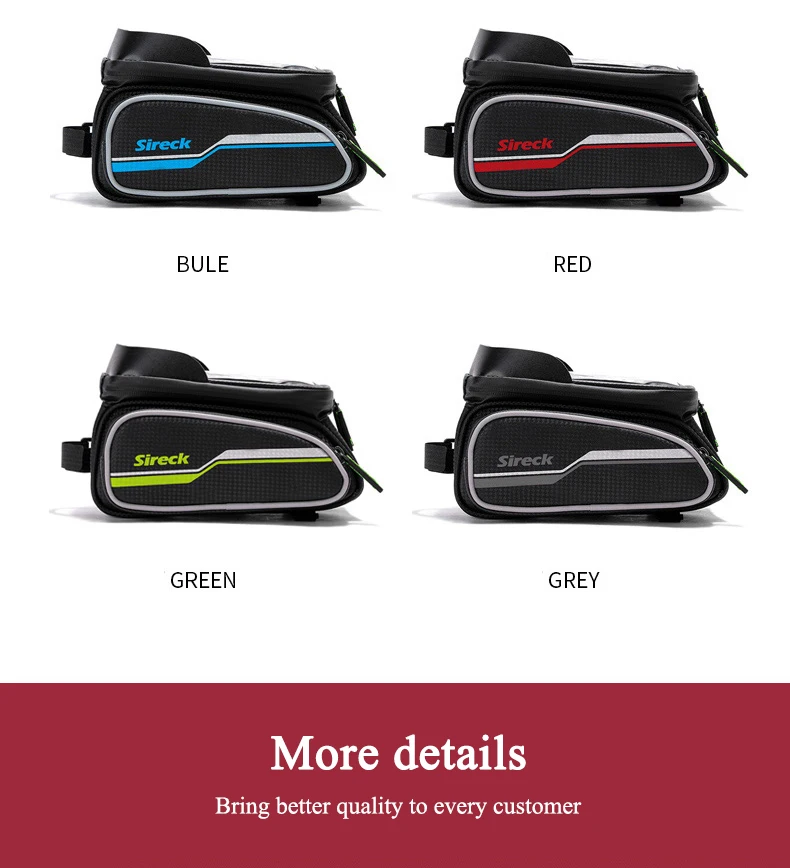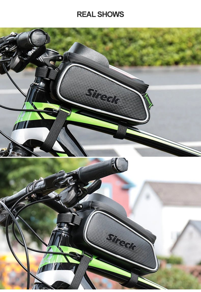 Generally good ohone bag. A lot of space, got in 20000mah powerbank with 3usb connectors. + fit to phone with screen 6.5"(Huawei mate 20pro) - front of bag may get worn quick if put front strap too tight. Handlebar fittings rubbing against bag. Need to create spacer, between bag and post.
