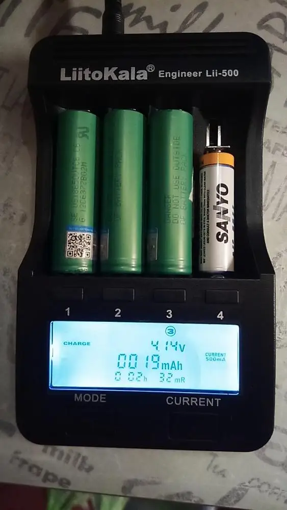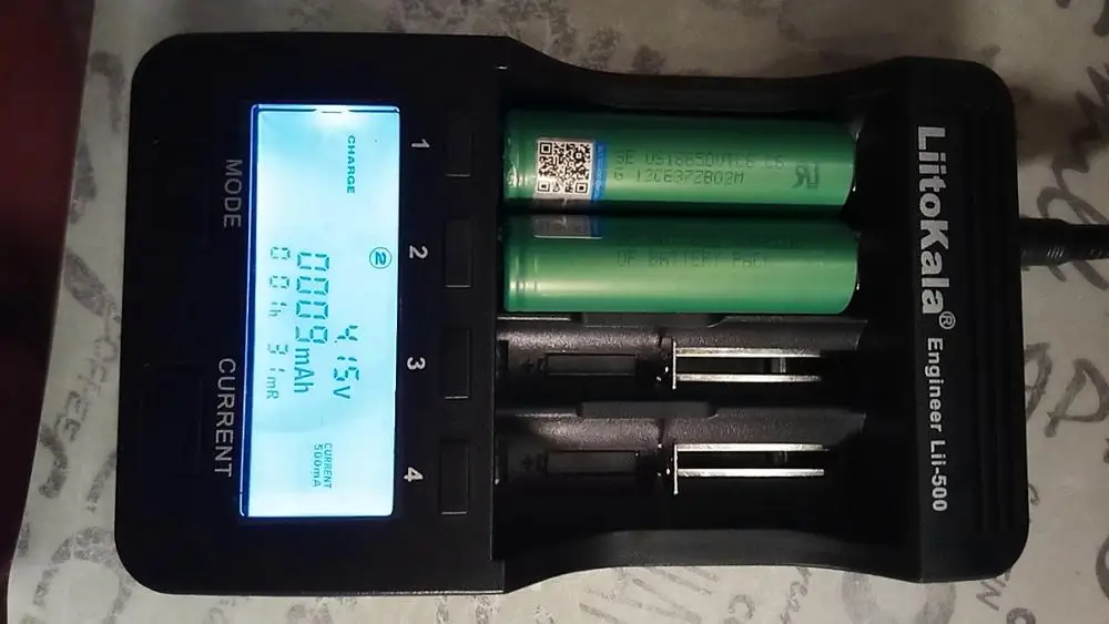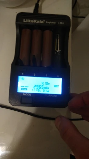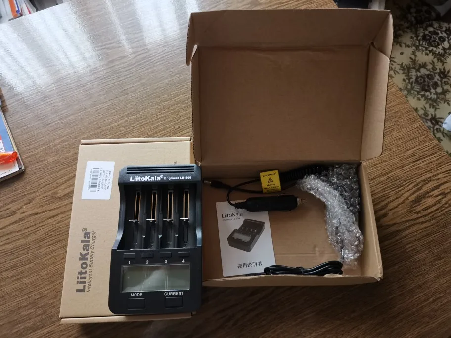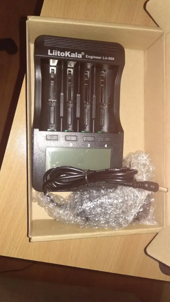 Заказывал из России, доставили за 5 дней из Москвы, IML, привезли курьером домой. Упаковано в оригинальной коробочке, сразу приступил к тестированию на оживление своих Ni-Mh, т.к. до этого была Lii-402 и аккумуляторы сразу ставились на зарядку, как этого попросит устройство их использующее. Думал у всех на Ni-Mh показывает внутреннее сопротивление 52 мили ома, но нет, даже удивительно. Лития не много, в основном это aa и aaa Ni-Mh для них и сменил зарядку на Lii-500. Под экраном виден мусор справа, плёнка транспортировочная наклеена с пузырями, в остальном всё хорошо. При работе даже на 300-500mah ощущается нагрев корпуса, по отзывам при 1Ah зарядки довольно часто выходят из строя от перегрева. Брал без БП т.к. их у меня полно от других устройств, разъём 5.5х2.1 не глубокий, даже 9мм торчит из корпуса 12в/2а. Не хватает функции refresh для автоматических циклов, в остальном критических претензий не имею.