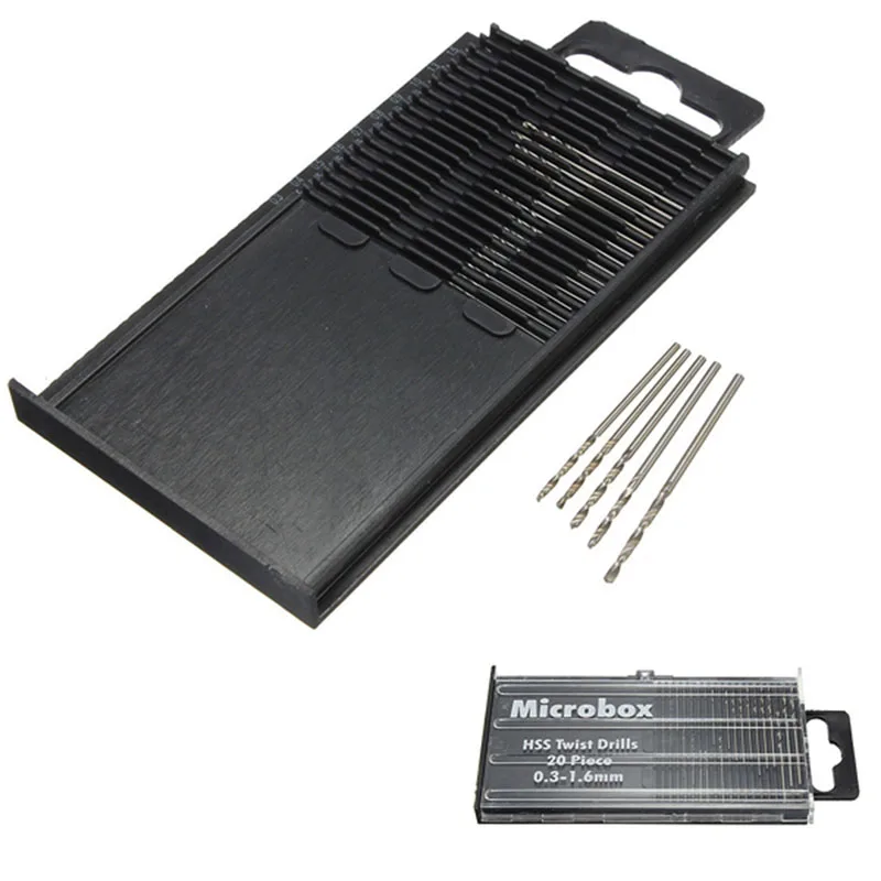 Набор мини-Сверл из быстрорежущей стали, 20 шт.компл., 0,3-1,6 мм, набор микроспиральных Сверл из быстрорежущей стали для деревообработки, набор микроспиральных Сверл с коробкой