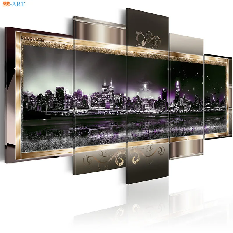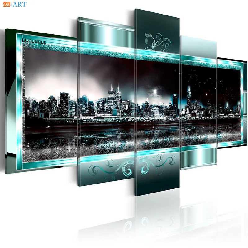 Современный настенный художественный фон с изображением ночного города плакат пейзажи Художественная печать на холсте 5 Панель настенная живопись для Гостиная домашний декор