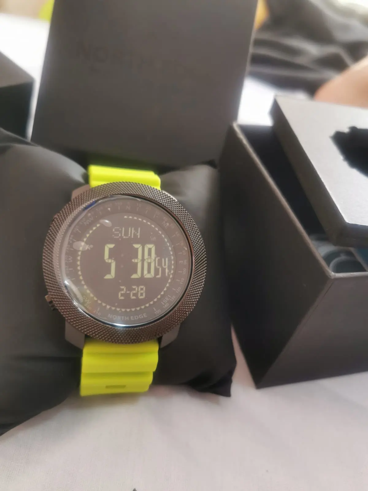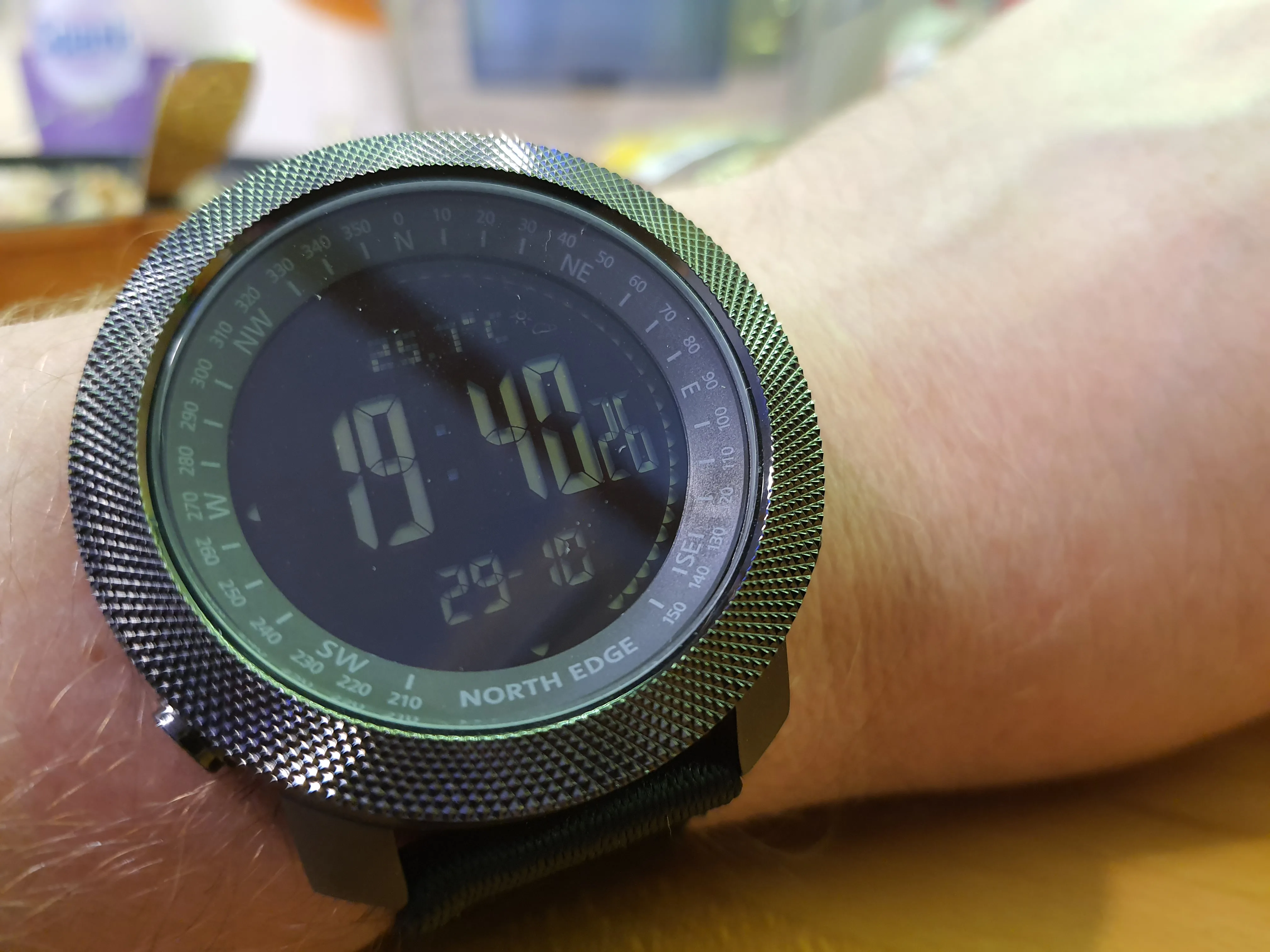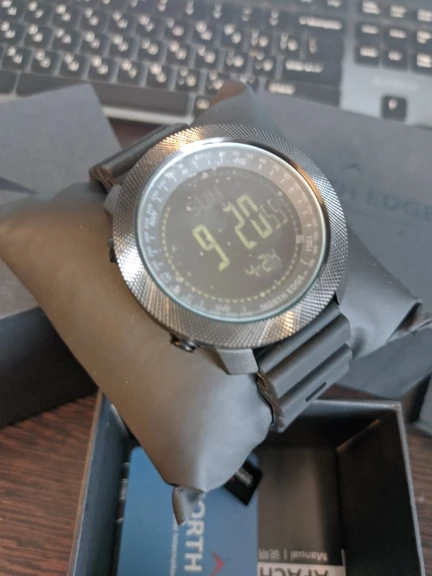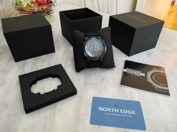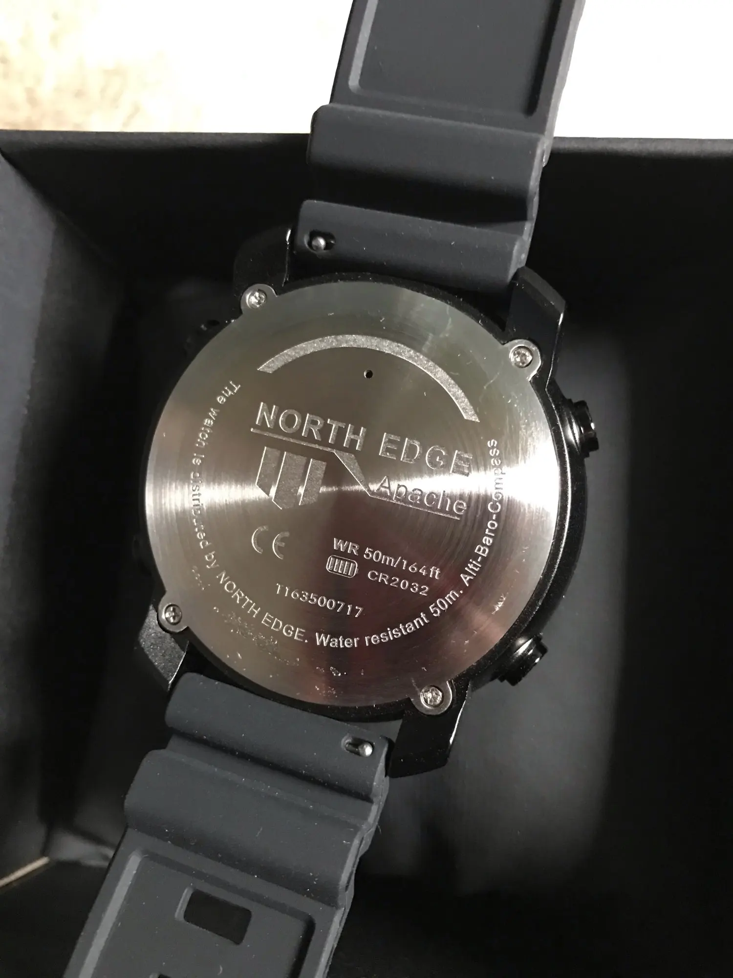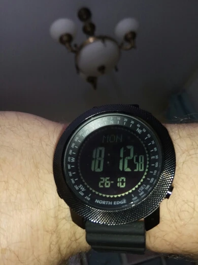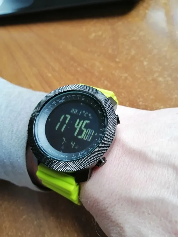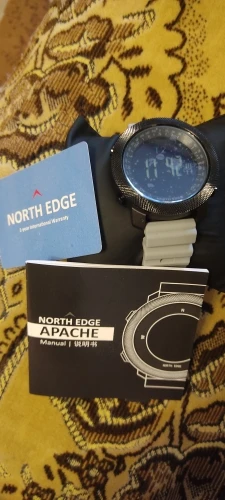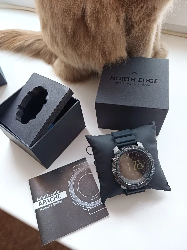 Часы - огонь! Металлический корпус. Тяжёлые, массивные, на руке смотрятся так же, как и на картинке. Упаковка отличная, прям подарочная! Ремешок взял rubber - рука не потеет, на ощупь приятный матовый силикон, застёжка надежная. Инструкция на китайском и английском. Если загуглить North Edge Apache, то в результатах поиска вываливается инструкция на русском. Сразу скажу, что вообще без инструкции настроить нереально)) По функционалу: всё что описано на сайте - в часах есть! И компас и температура и давление воздуха и шагомер и метроном и таймер и т.д. После калибровки - компас точный. Если не на руке, то температуру меряет оч точно, если надеть - то чет средне показывает в районе 30..31C°. Давление в паскалях. Есть история изменения давления в виде графика, может быть кому-то это полезно. Судя по инструкции - воды не боятся, но без фанатизма - нырять и жмакать на дне кнопки не рекомендуется. Экран инверсионный, подсветка классическая, есть 10 уровней настройки четкости дисплея.