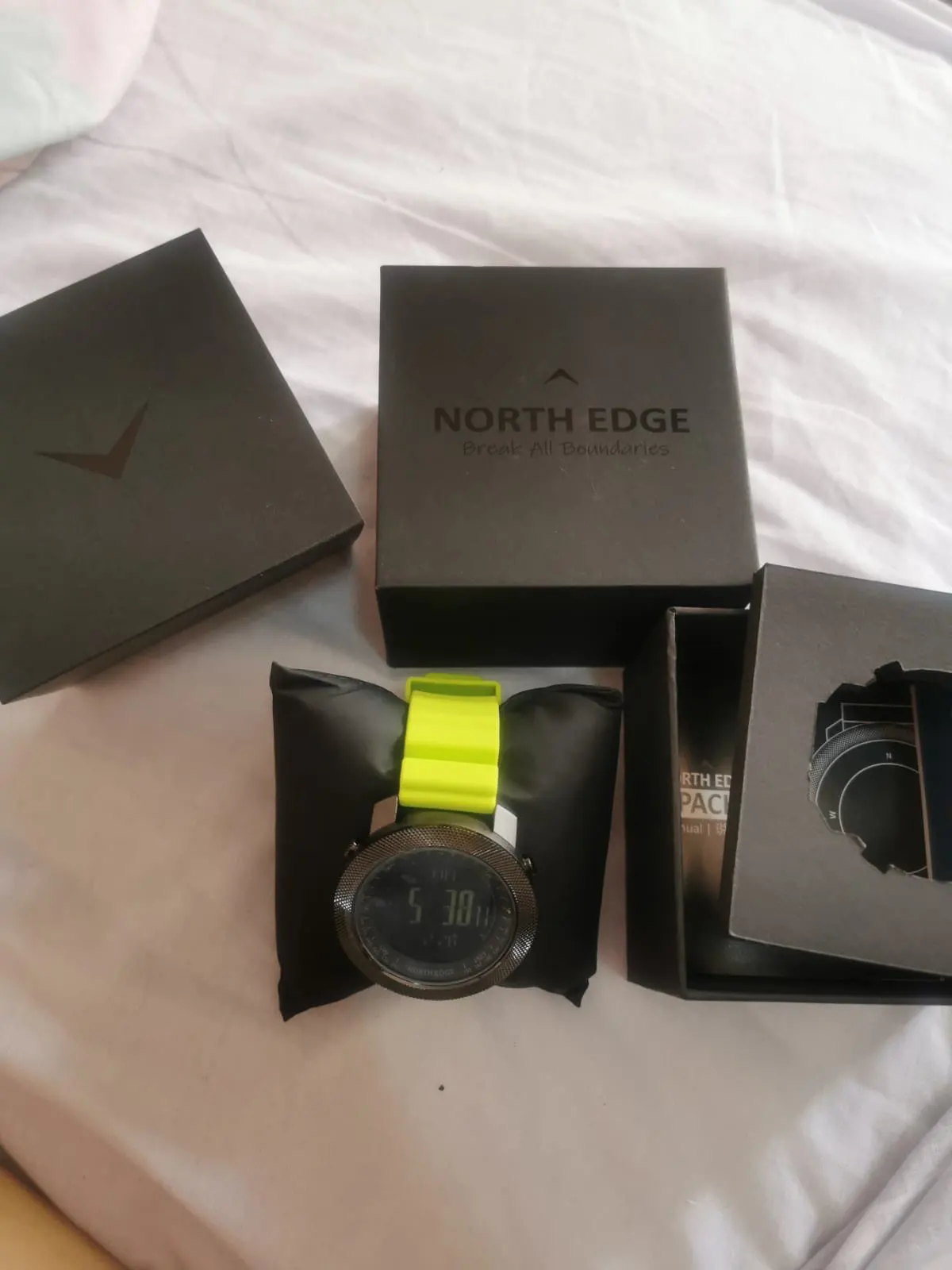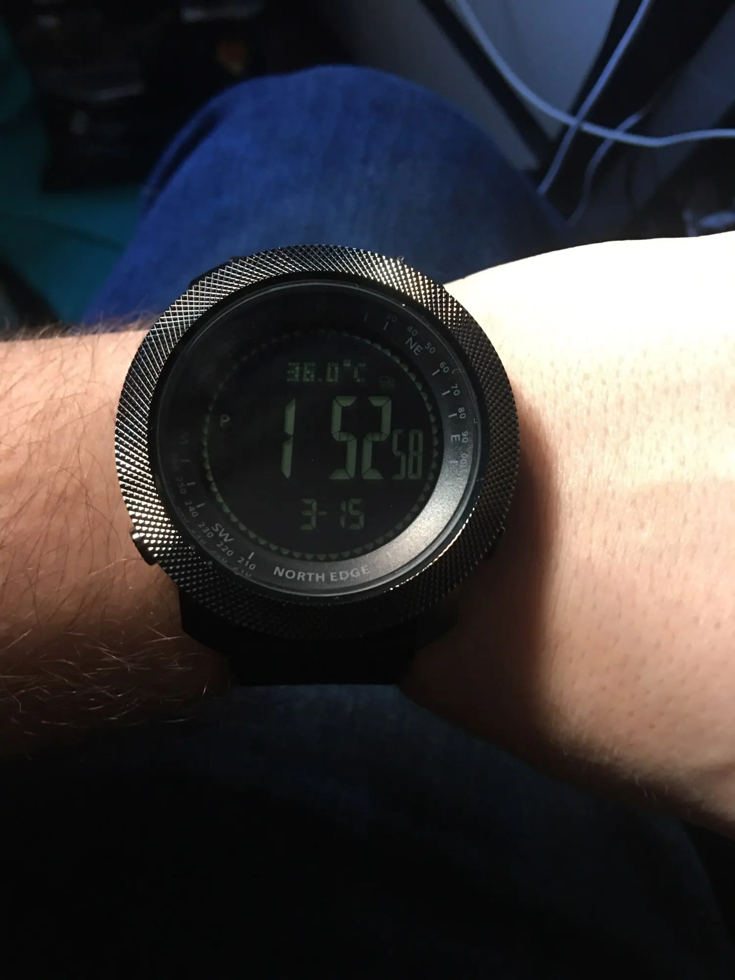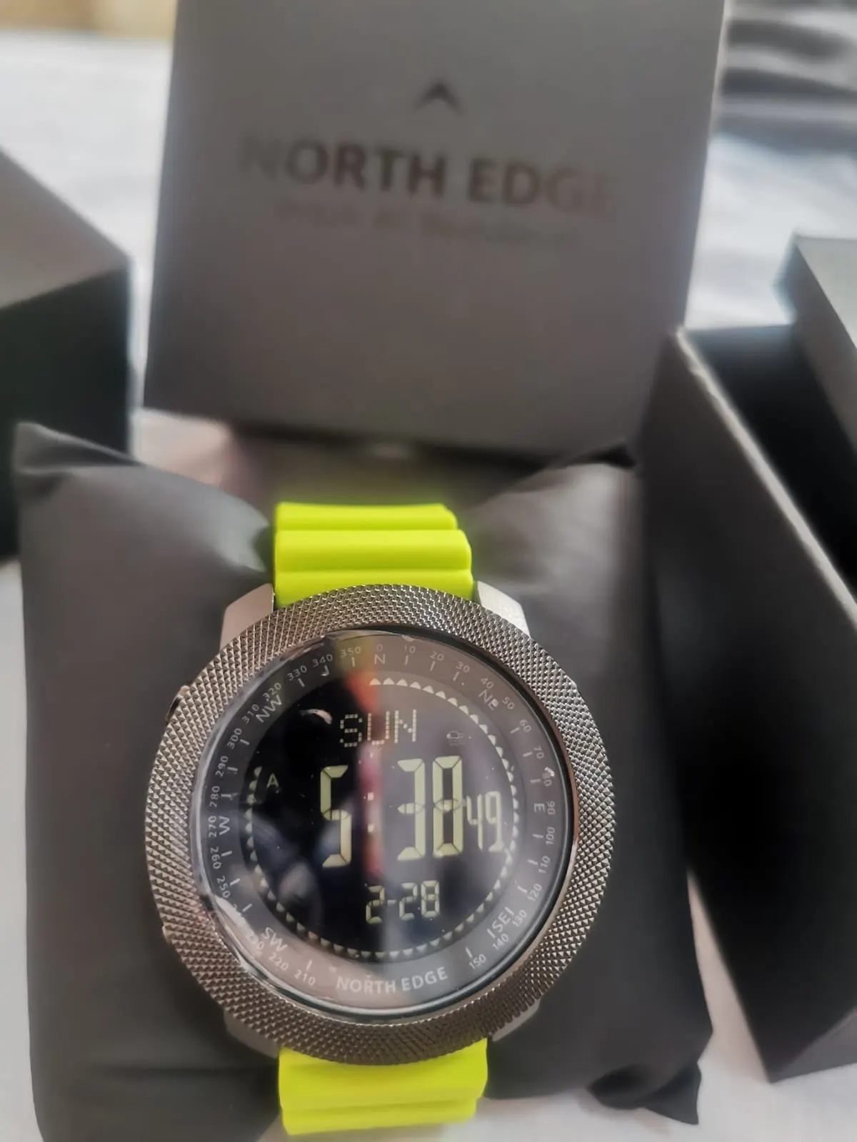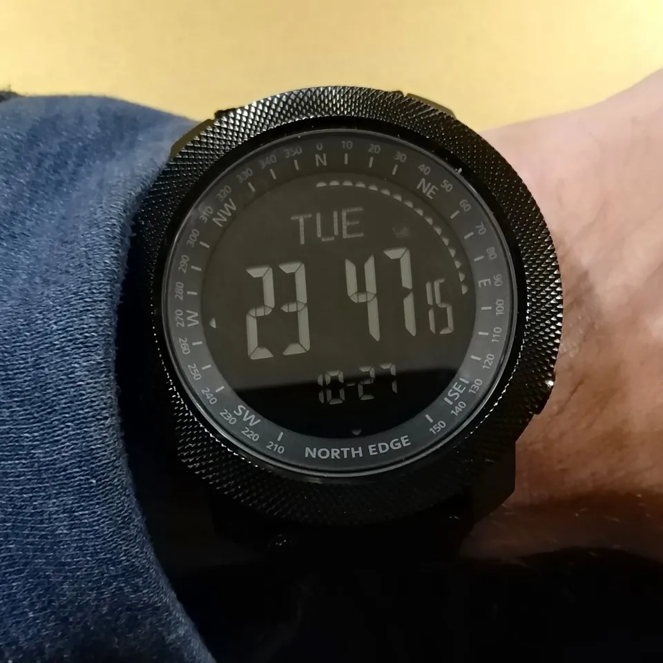 Часы - огонь! Металлический корпус. Тяжёлые, массивные, на руке смотрятся так же, как и на картинке. Упаковка отличная, прям подарочная! Ремешок взял rubber - рука не потеет, на ощупь приятный матовый силикон, застёжка надежная. Инструкция на китайском и английском. Если загуглить North Edge Apache, то в результатах поиска вываливается инструкция на русском. Сразу скажу, что вообще без инструкции настроить нереально)) По функционалу: всё что описано на сайте - в часах есть! И компас и температура и давление воздуха и шагомер и метроном и таймер и т.д. После калибровки - компас точный. Если не на руке, то температуру меряет оч точно, если надеть - то чет средне показывает в районе 30..31C°. Давление в паскалях. Есть история изменения давления в виде графика, может быть кому-то это полезно. Судя по инструкции - воды не боятся, но без фанатизма - нырять и жмакать на дне кнопки не рекомендуется. Экран инверсионный, подсветка классическая, есть 10 уровней настройки четкости дисплея.