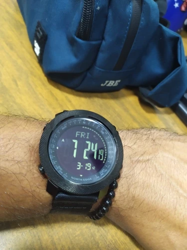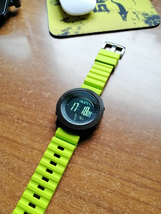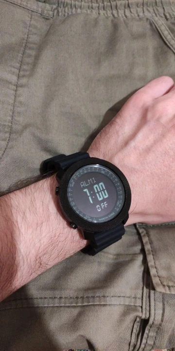 Аналог часов spovan, но здесь дисплей крупнее и корпус массивнее. Удобны за счёт того четыре кнопки, а не пять как на многих аналогах, пятая кнопка обычно упирается в запястье. Здесь все хорошо в этом плане. Безель выступает над стеклом на половину миллиметра. Забыл заказать защитное стекло, пока наклеил кружок из скотча. Все датчики работают, часы приехали включенными. Шагомер более адекватен чем на аналогах, считает с точностью +/-5%, нужно только настроить ширину шага. Счётчик шагов сбрасывается кнопкой подсветки. Компас нужно откалибровать первый раз и выставить магнитное склонение. Барометр тоже калибруются. А вот прогноз погоды врёт безбожно, на споване предсказывал точно. Предыдущие часы от спован не выдержали душа и умерли, если эти сломаются, дополню отзыв. Тканевый браслет говно, пропитывается потом и грязью, буду искать силиконовый. В данный момент, часы рекомендую. Брал за ~2900р.