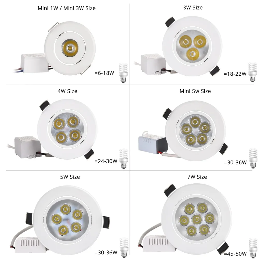 Светодиодный светильник с регулируемой яркостью для жилого помещения, 1 Вт 3 Вт 4 Вт 5 Вт 7 Вт, теплый естественный чистый белый 110 В 220 В, встраиваемый Светодиодный точечный светильник, светильник для внутреннего освещения