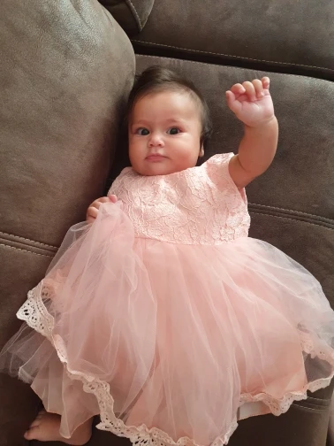 хорошее платье за свои деньги,в меру пышное.юбка с блестками,только они все отваливаются,при стирке,думаю,их не останется совсем.на рост 71 см ,плотного телосложения(месяц до годика ребенка) заказала размер 12м. хорошо подошло.рекомендую. пришло на 5 дней раньше назначенного срока доставки (Курск)