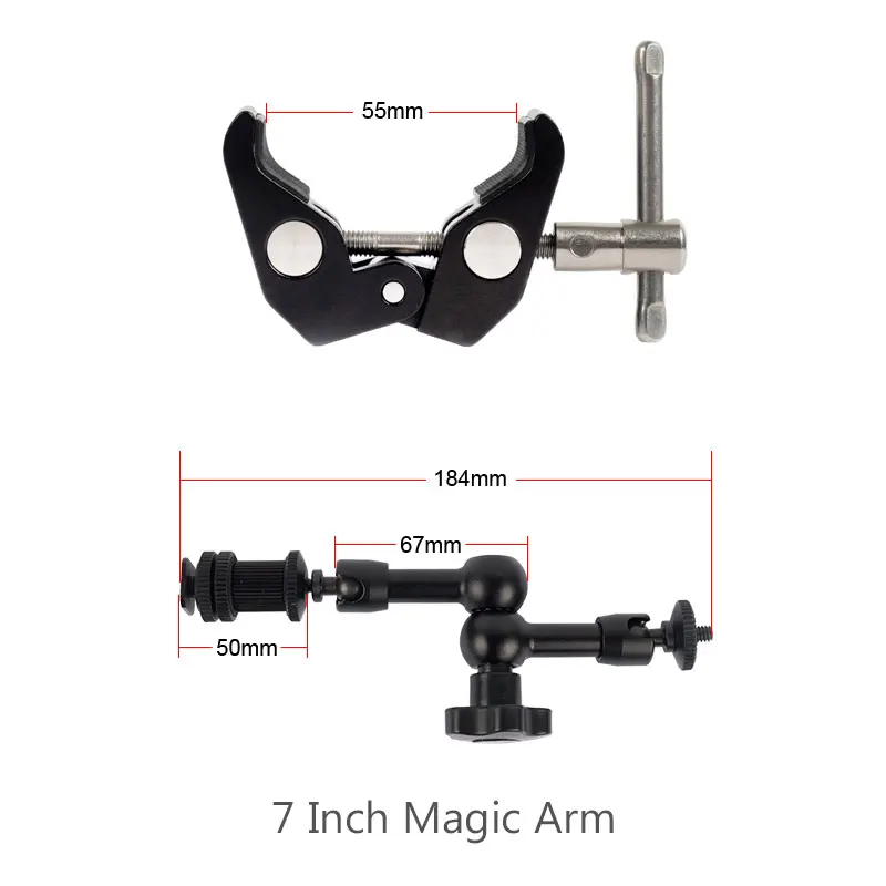 Регулируемый фрикционный Шарнирный рычаг с супер зажимом для камеры DSLR, ЖК-монитора, аксессуары для светодиодной камеры, 7 дюймов
