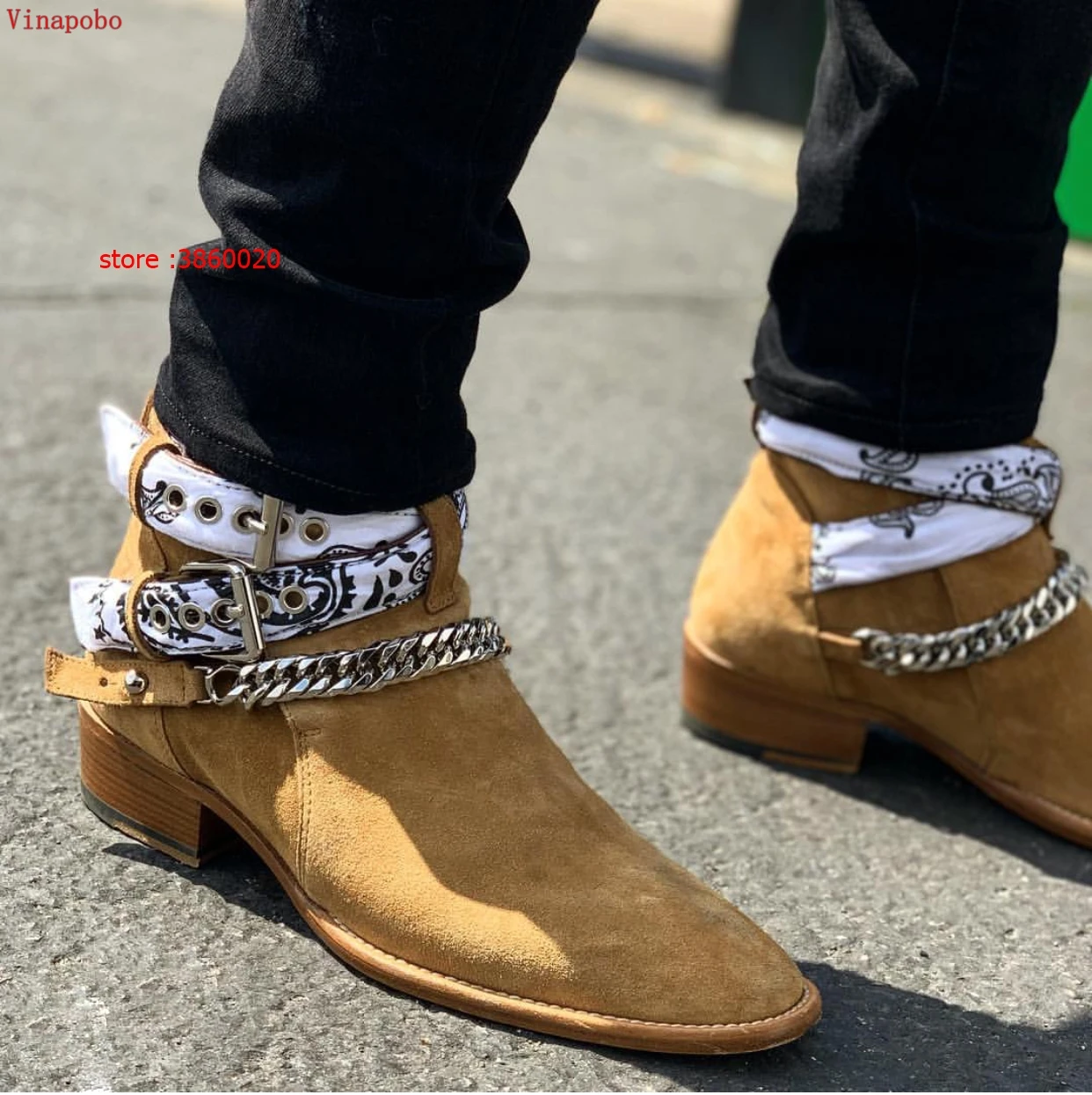 Мужские замшевые ботинки челси, повседневные ботильоны с острым носком и пряжкой, вечерние ботинки с металлическими серебристыми цепочками, Sapatos Muje