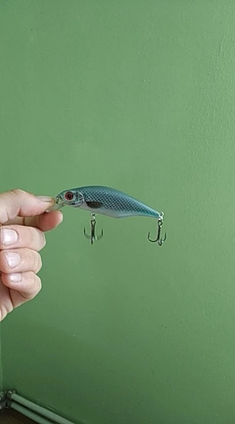Написано, что воблер тонущий, но по факту плавает как пробка. Пришлось подгружать почти на три грамма, но всеравно довольно быстро всплывает. Петли клеить не надо, крючки острые. За свои деньги нормальная приманка, думаю щуке должен понравиться.