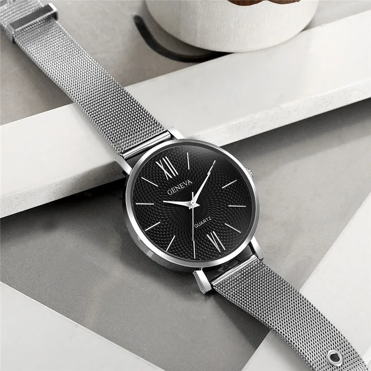 Простые Модные черные кварцевые часы для мужчин и женщин, сетчатый ремешок из нержавеющей стали, высококачественные повседневные наручные часы, подарок для женщин Reloj