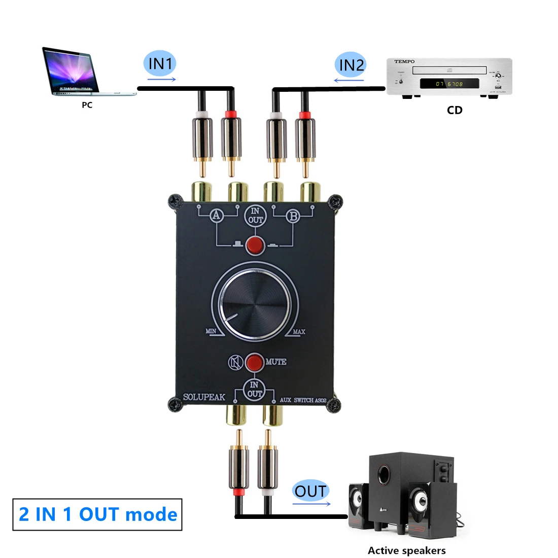 2 в 1 выход RCA стерео аудио источник переключатель селектора сигнала сплиттер scha...