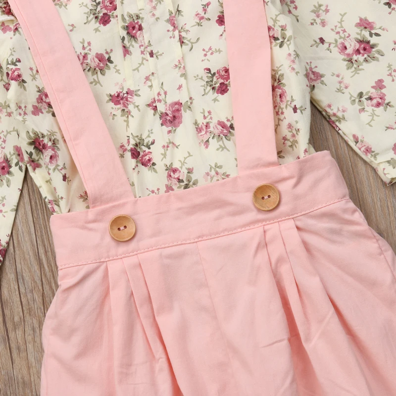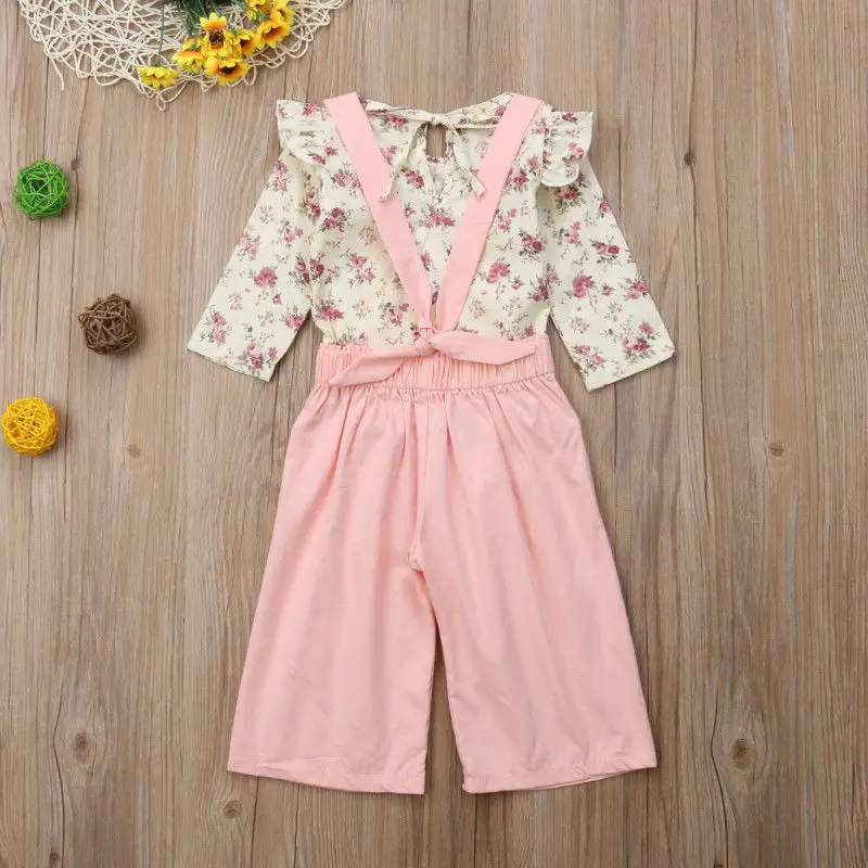 2018 милый набор одежды для принцессы для маленьких девочек, 2 предмета, топы с длинными рукавами и оборками и цветочным принтом + розовые штаны-комбинезон, осенняя одежда