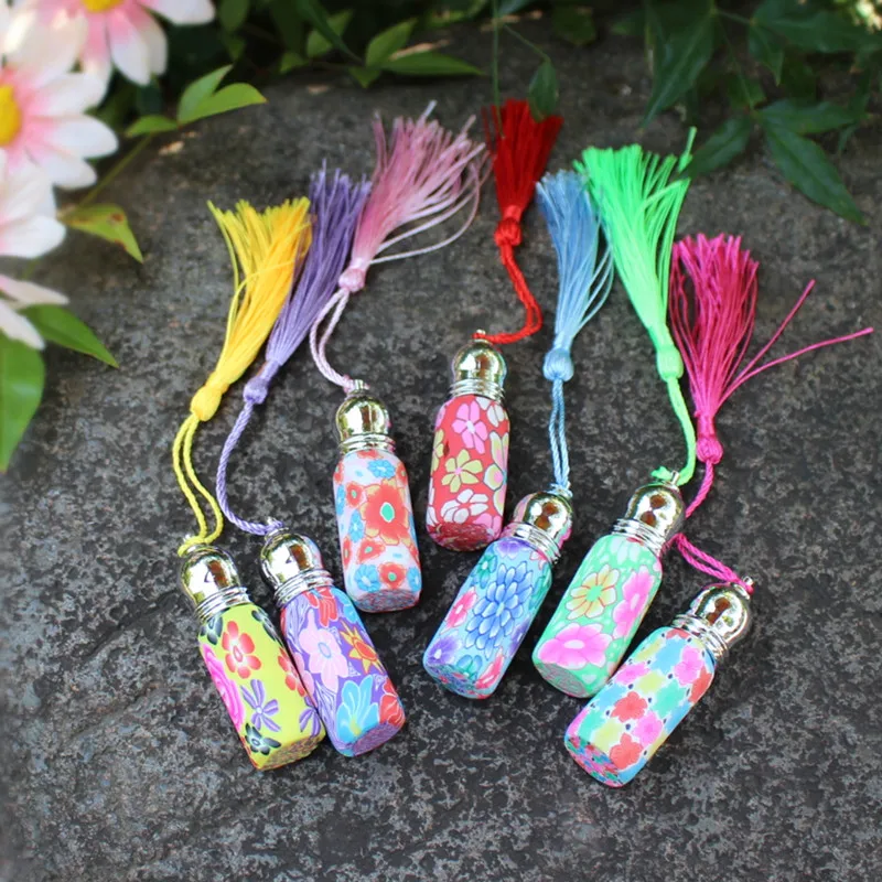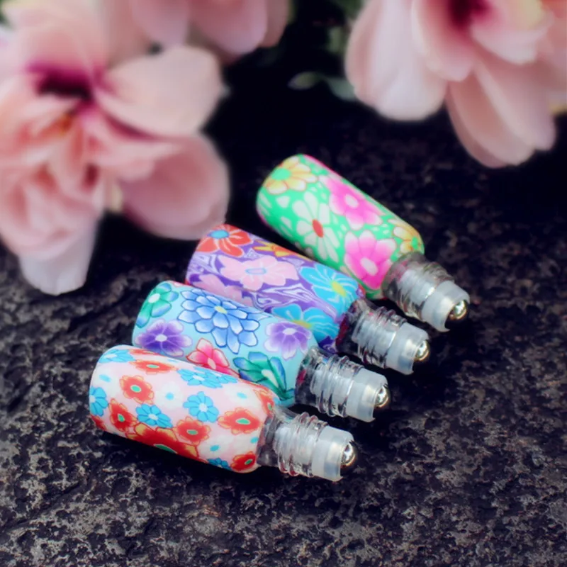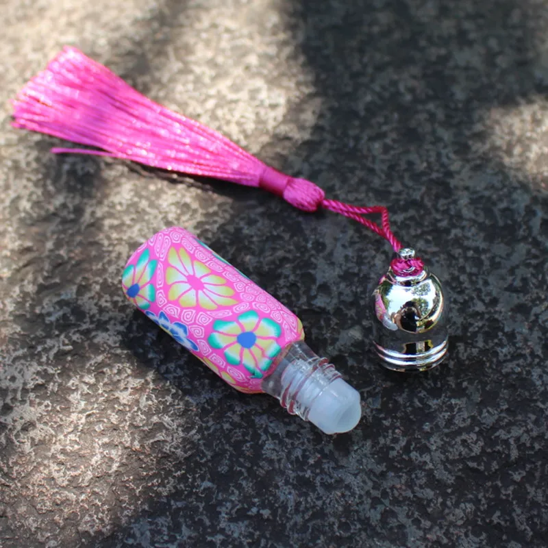 20 шт.лот 6 мл рулонные стеклянные флаконы для духов, флакон с роликом из полимерной глины, многоразовые флаконы для эфирного масла с металлическимстеклянным шариком