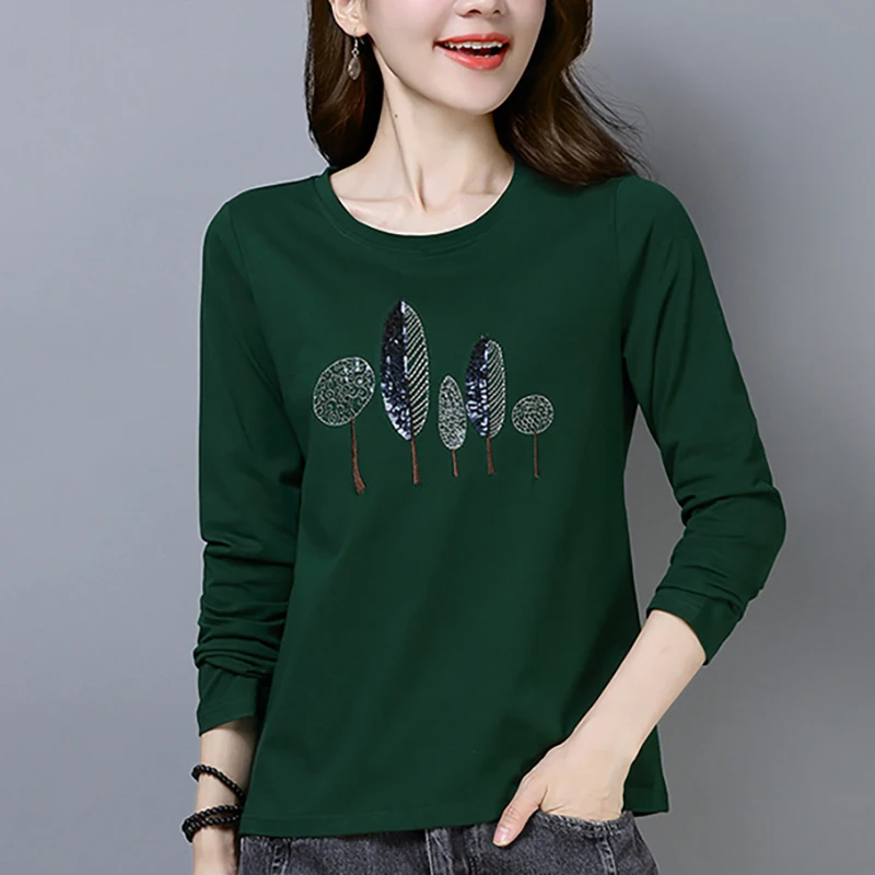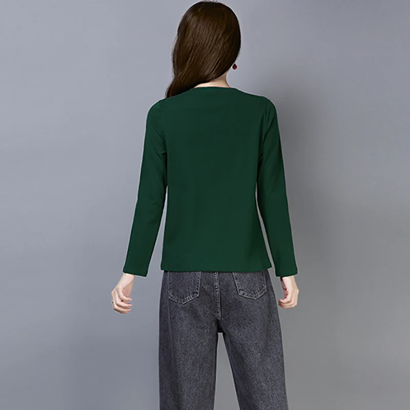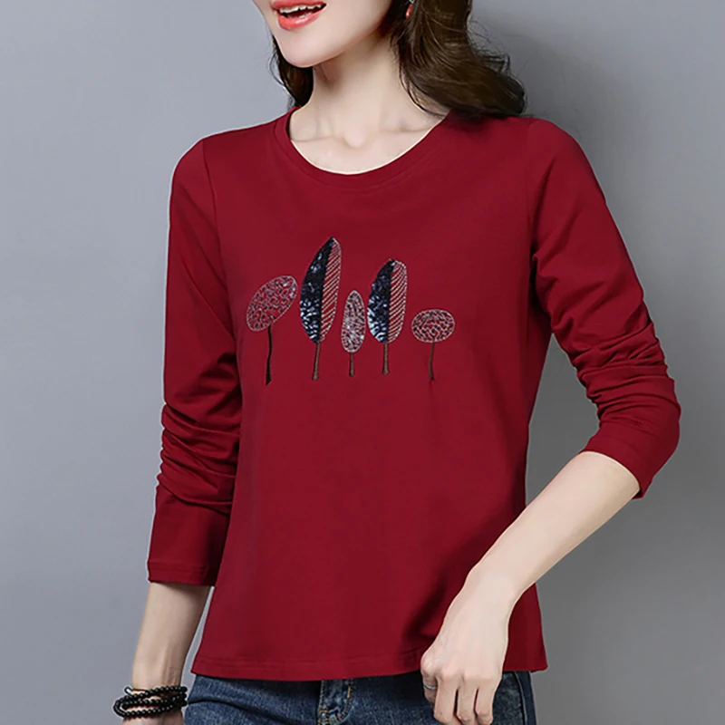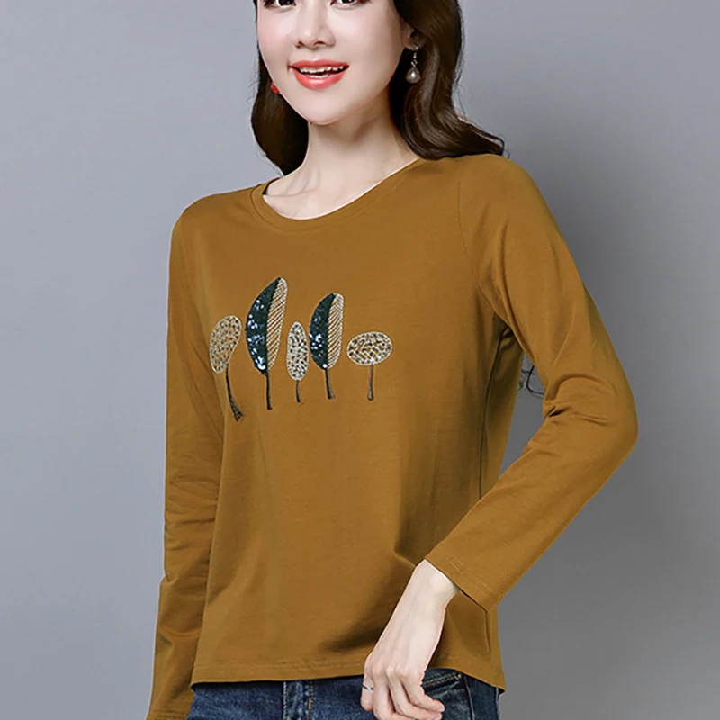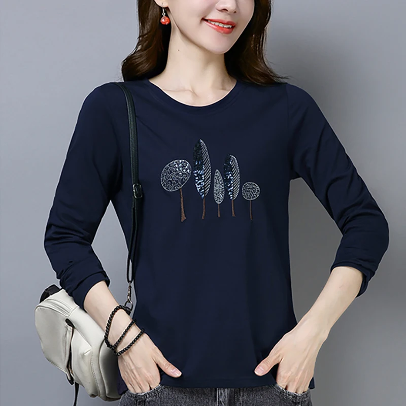 Футболка Shintimes из 2021 хлопка с вышивкой, рубашка с длинным рукавом, женская футболка, Корейская одежда, футболка, женская одежда, футболка, женская одежда