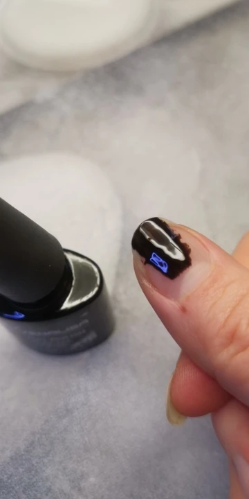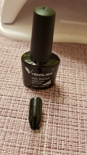 доставка до МО была очень долгой, заказ сделан в конце июля, а гель лак пришел только в ноябре! тонкими слоями полное перекрытие в 3 слоя. на обычном свету цвет черный, а под лампой с холодным советом отдает темно синим оттенком. продавец по моей просьбе 2 раза продлял время ожидания посылки.
