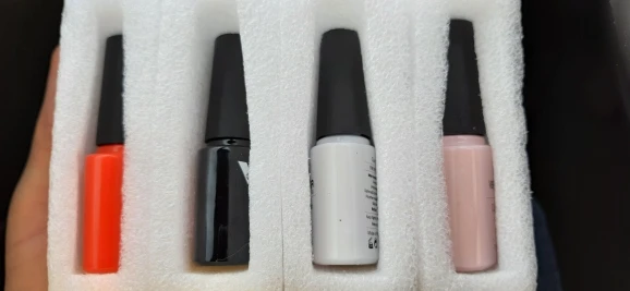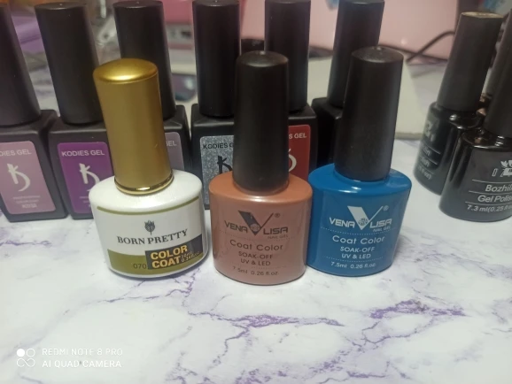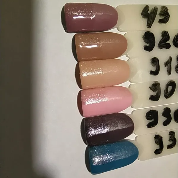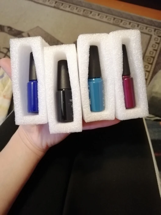 Очень долго шли гель-лаки, уже хотела спор открывать. некоторые плотные и ложатся в один слой, а некоторые приходится покрывать в 2 слоя. но в общем они не плохие.