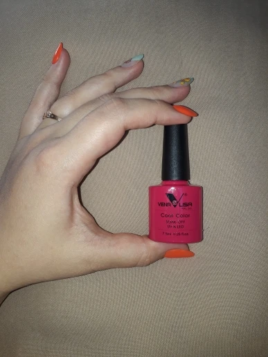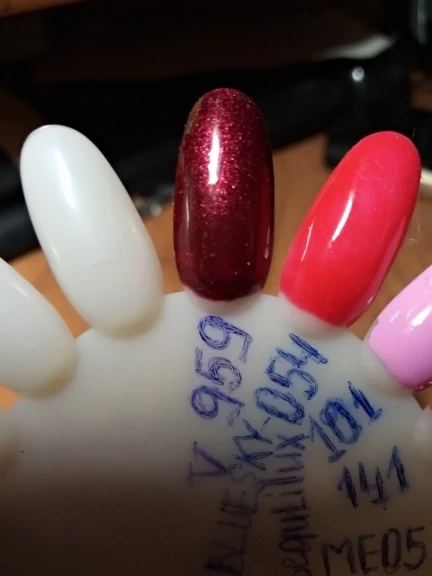На фото лак 929 + сверху 955, лак с блёстками. Держется хорошо. Но я после базы наношу дополнительно слой геля, отдельно заказывала баночку. После геля уже лак. Держется долго, со стороны кутикулы таким образом лак не отстаёт от ногтя даже после долгого мытья посуды или после бани. Заказывала много лаков у этого продавца, да, действительно, упаковывают лаки надёжно, доставка до Уфы месяц. Срок годности 2 года, заказывала в сентябре, дата на лаке сентябрьская. Сроки хорошие. Очень рекомендую брать. Мне продавец понравился.