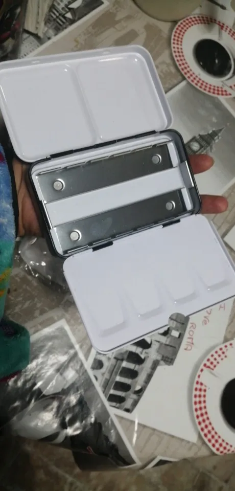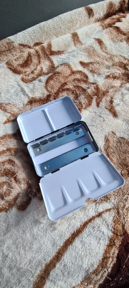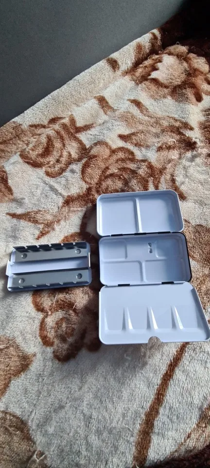 Нарешті я отримала цю коробочку дуже хотіла вже давно, це вже моє друге замовлення і нарешті вона в мене, дуже зручна для того щоб брати з собою на пленером або у похід, можно доставити кювети зі своїми кольорами і змінювати їх, дуже крута річ для художників і ілюстраторів) сама коробочка зроблена з якісного металу, нічого не пошкодилось в дорозі, все супер )))