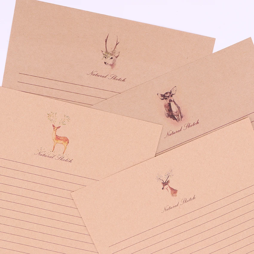 Бумага для писем, 10 листов, крафт-бумага с рисунком оленя