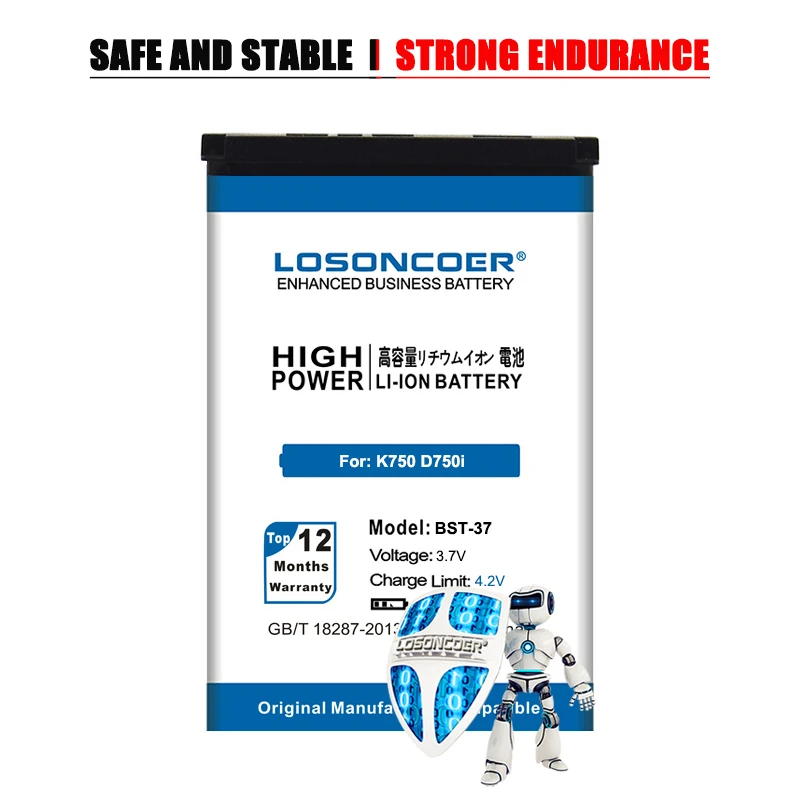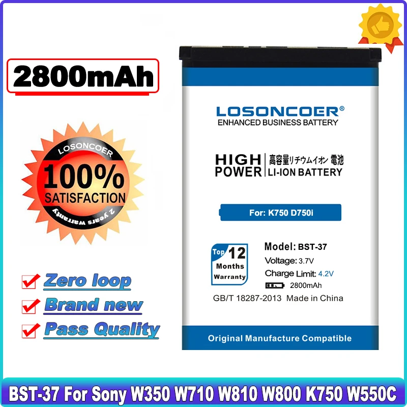 2800 мАч, Батарея BST-37 для Sony Ericsson K750 D750i K758C S600C V...