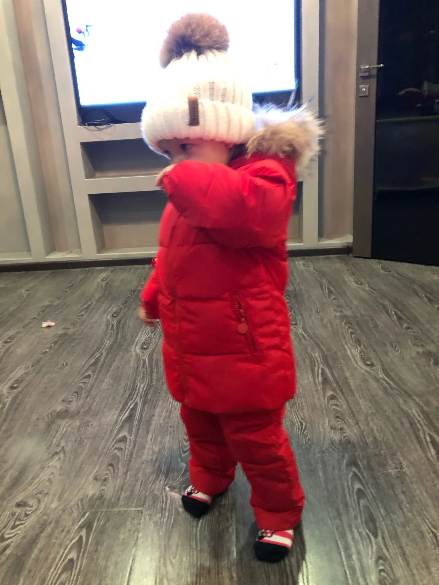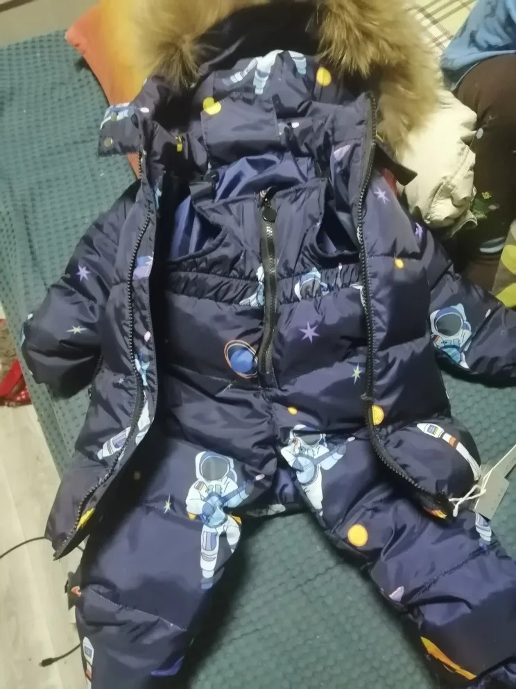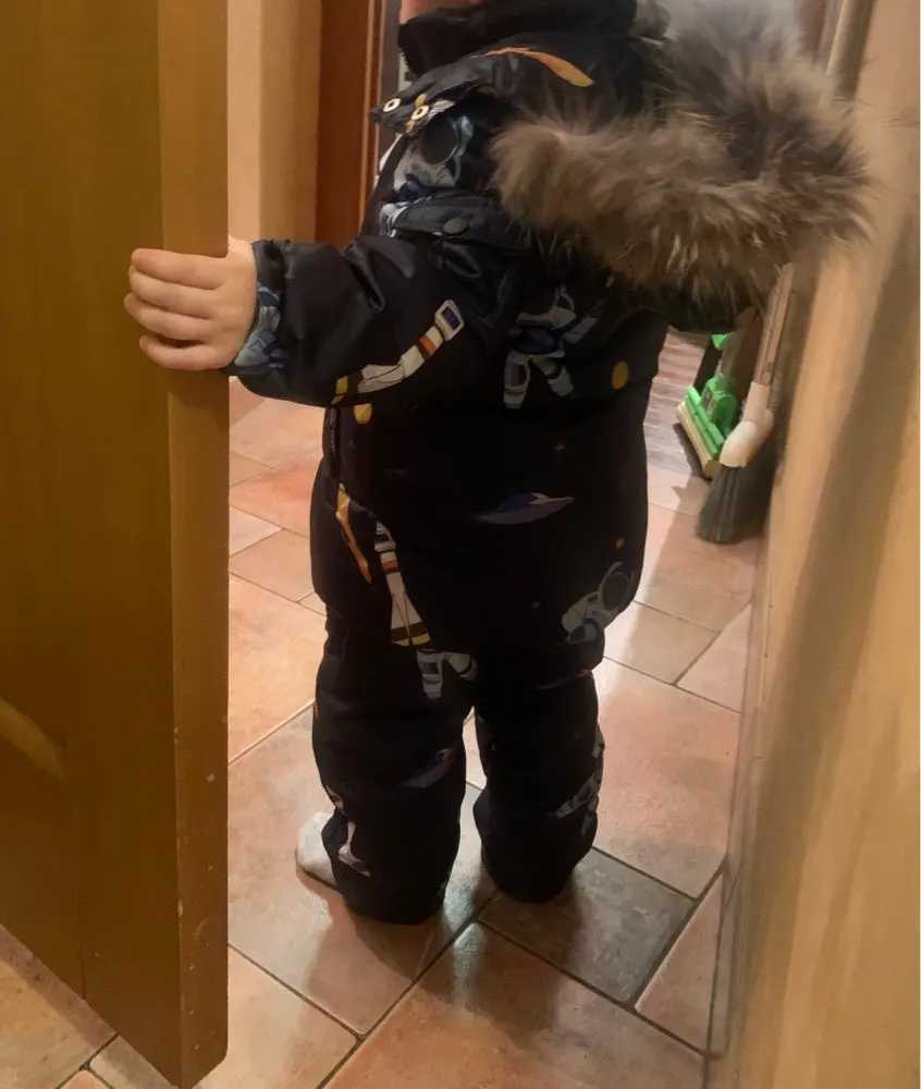 Сначала была небольшая проблема с доставкой нашей почты, я немного понервничала, продавец отличный, на связь выходил сразу, отвечал, скидывал отслеживания за это 5 звезд!!! Теперь о костюме, КОСТЮМ ШИКАРНЫЙ!!! Мех на капюшоне отстегивается, натуральный и пушистый, не лысый хвостик)))) Комбез на молнии, все на регулируемых лямочках, поясница и животик закрыты. Куртка-пуховик тёплый, распушился, наполнитель пух, это точно☝️ материал мягкий и плотный, наподобие мягкой мембраны. на комбезе, внутри на ножках, вкладки с резинками, на сапожки чтобы снег не попадал, на курточке на рукаве кармашек. В Общем Все Отлично, Мы ДОВОЛЬНЫ. СПАСИБО