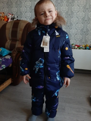 Отличный костюм, на указанные -25-30 не тянет, но внутри пух, с одеждой теплой под низ до -15-20 подойдёт, наш рост в 3,3 года 104 см, размер 6T(120 на бирке) как раз на один сезон, фото прилагаю, мех не пушистый, но нам все понравилось, доставка месяц до Казани