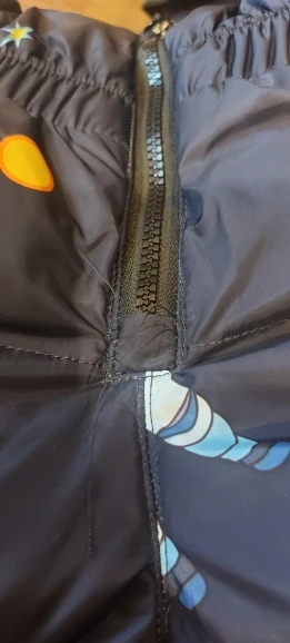 Костюм шёл до ХМАО 2 месяца!!! Очень долго! На рост 104 размер 6 впритык, штаны при ходьбе или если сесть задираются, т.е малы. Костюм тонкий! Максимум до -15. Ребёнок в -20 сказала, что холодно. Посмотрела куртку на свет, пуха совсем мало и распределён не равномерно! Очень расстроилась, поверила положительным отзывам, но увы товар не понравился, несмотря на то что прошит аккуратно