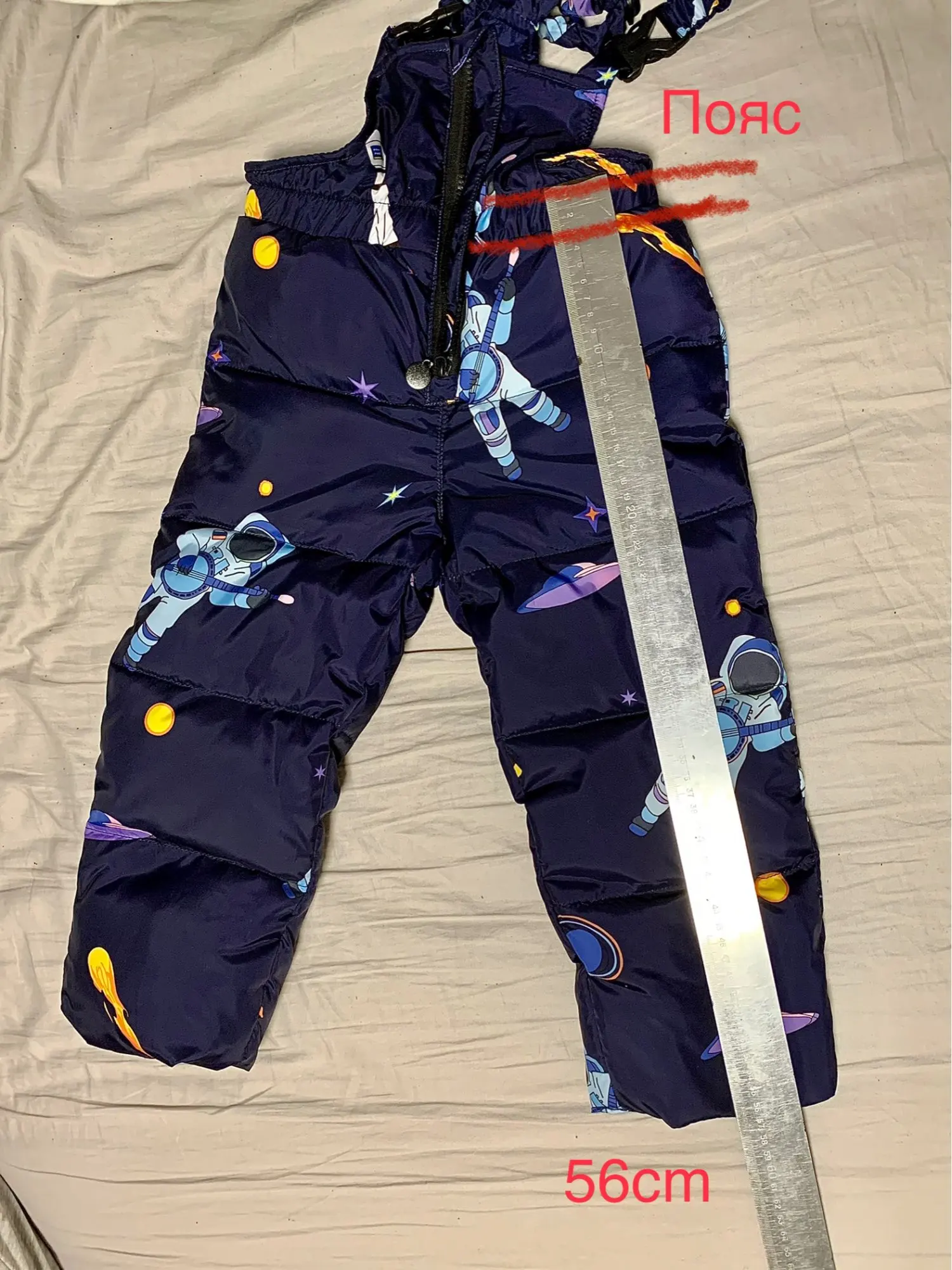 Посылка в Беларусь шла 45 дней. Зная, что изделия часто маломерят, на 3-летнего ребенка взяла 6 размер. Ребенок ростом 99см. Куртка пришла 120размер, полукомбинезон - 110. Судя, по отзывам о коротких штанишках, не мне первой. Курточка на ребёнке норм, чуть с запасом, а вот штанишки пришлось максимально отложить, добавила 3см из возможного и комплект оставила. Отдельная тема- опушка на капюшоне. Нитку из меха сложно назвать опушкой) Сама заменила на густой мех. Честно написав продавцу, попросила небольшую компенсацию за своё рукоделие) Оплатили) Внутри изделия точно пух, так как вещь порола и перешивала. Комплект тёплый точно, но своему стройняшке ещё на куртку подставила флис) Теперь мне всё нравится) Комплект только на стройных деток, на пухляшей не подойдёт. Полукомбинезон плотненько облегает)
