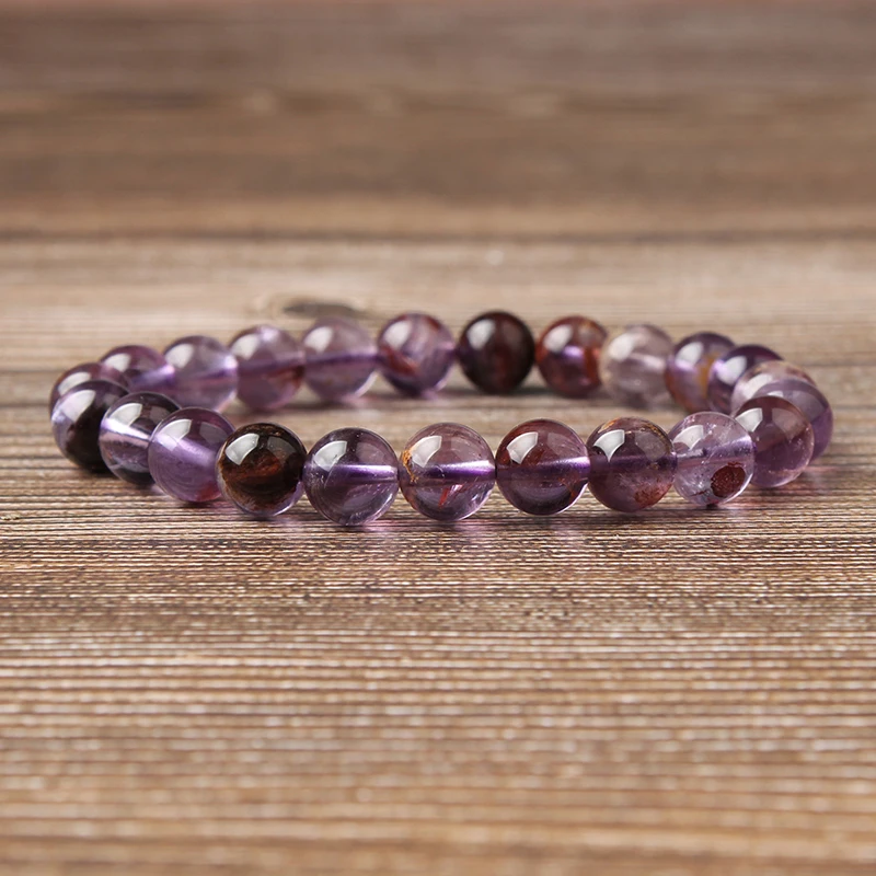 LanLi 8 мм модные натуральные ювелирные изделия фиолетовыйПризракКамни Свободный браслет с бусинами Подходит Для гламурных мужчин и женщин амулет.
