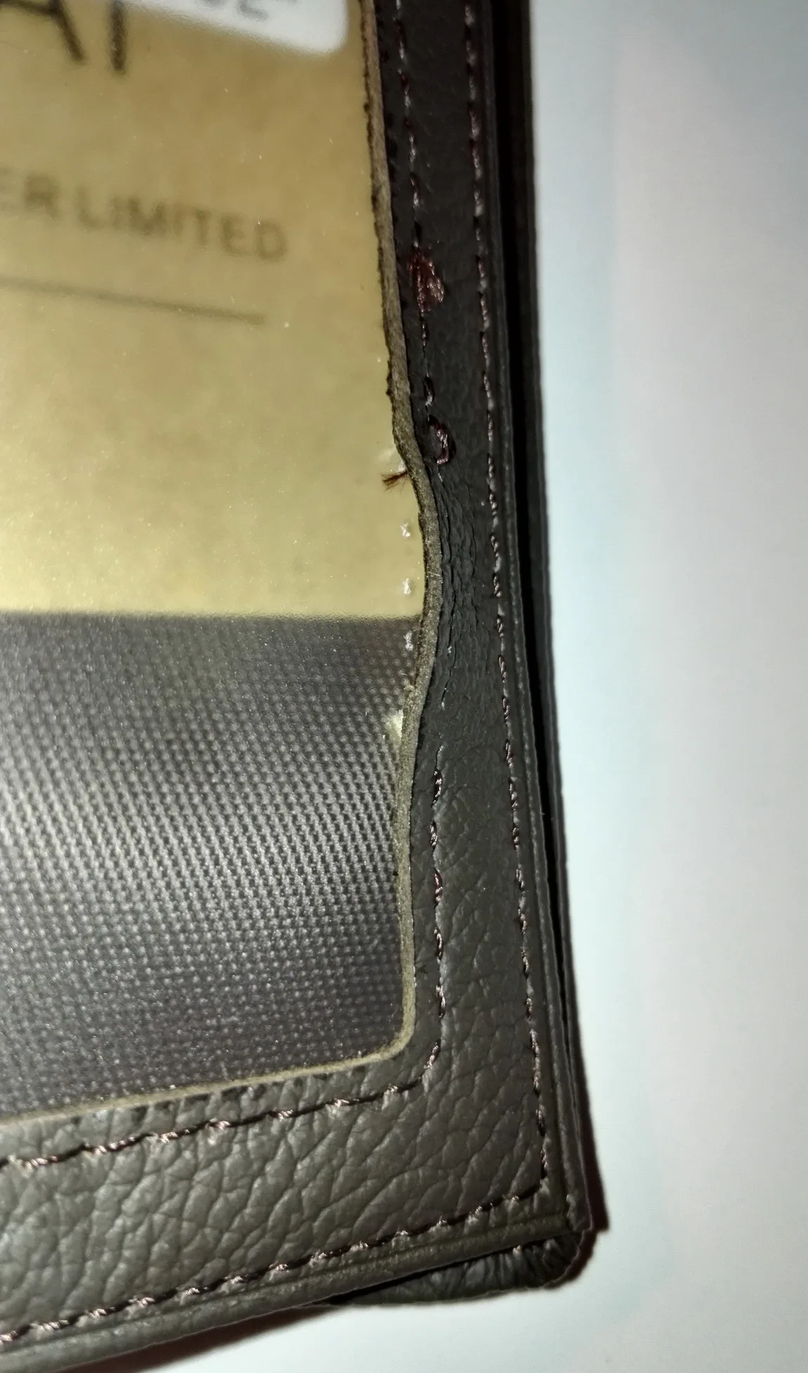 Качеством кошелька довольна, но не идеально. Упаковано очень хорошо, были картонные держатели формы и пожелания от продавца. Всё-таки есть следы от клея, и выступают нитки (на 4м фото будет видно). Ещё я просила гравировку сделать, гравировки нет . Но посылка дошла быстро в Украину: до Харькова 14 дней. Есть пробник материала из которого сделан кошелёк, есть пакетик с шариками от моли. Присутствуют также вставочки для поддержания формы в нескольких отделениях. Самое милое – это пожелания от продавца. Но за гравировку все равно обидно, Ну хоть я и расстроена, снимать звезды за это не буду. Сам по себе товар хороший, запах выветрится со временем, за свои деньги товар качественный. Заказывала как подарок на новый год, если парню понравится, посмотрю как будет в носке, дополню отзыв.