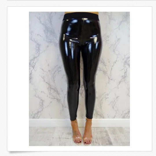 Модные женские виниловые леггинсы из ПВХ с высокой талией, блестящи...