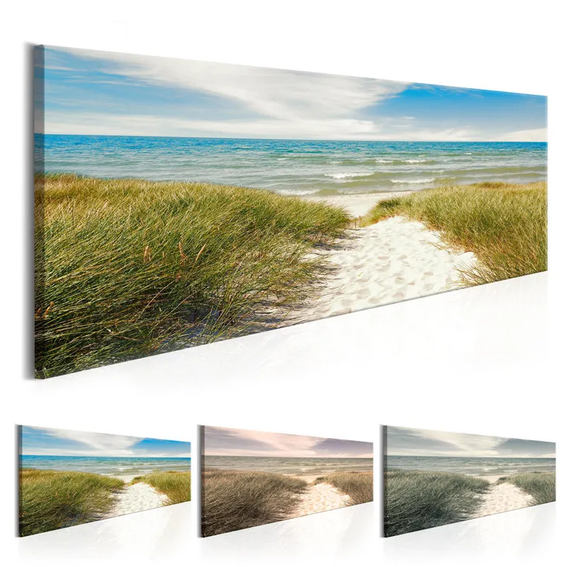 Синий пейзаж, Картина на холсте море плакат с волнами длинные штани...