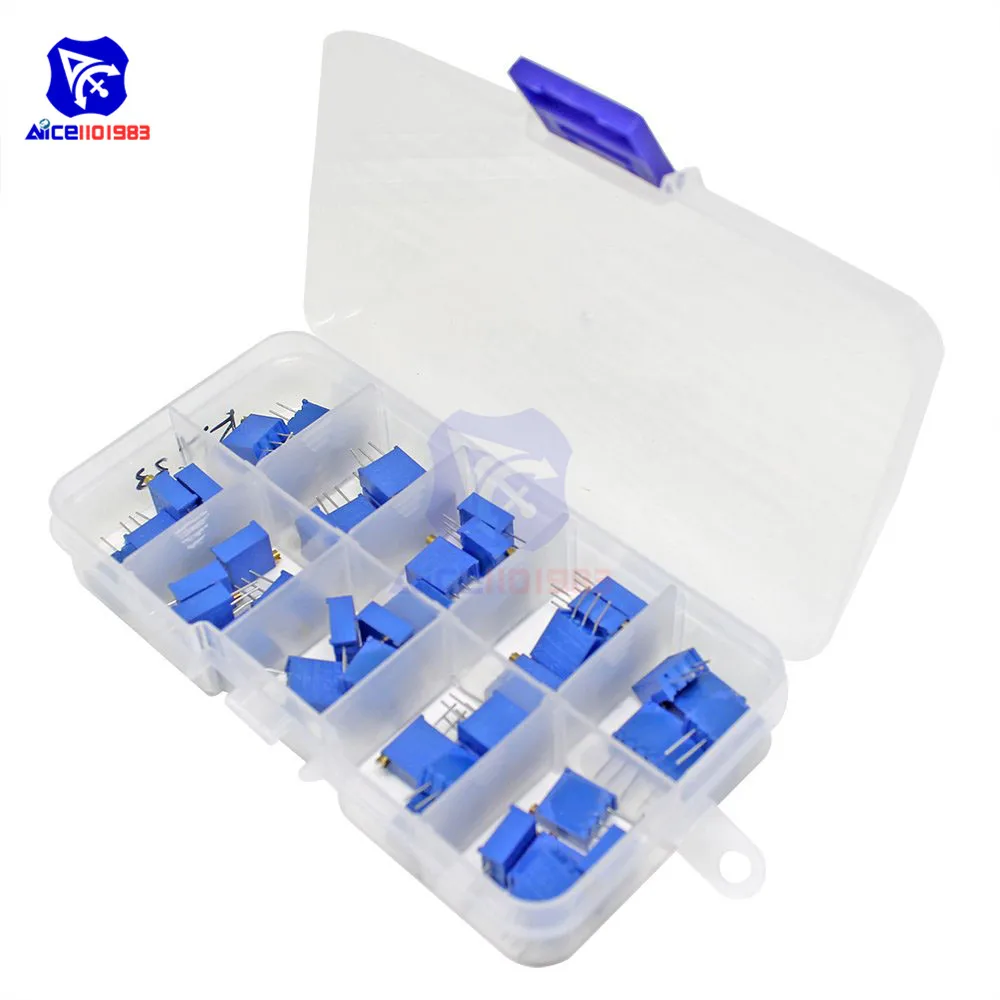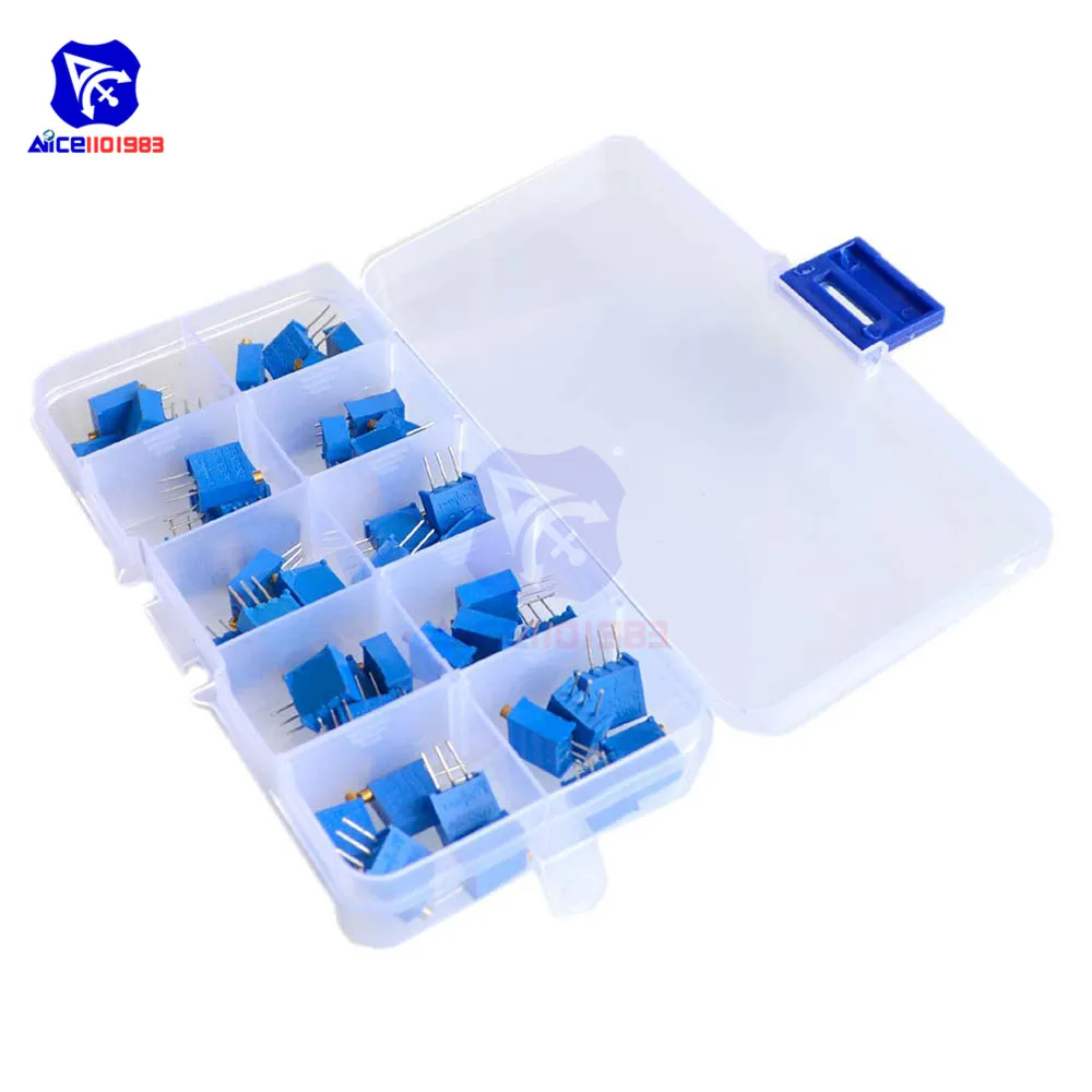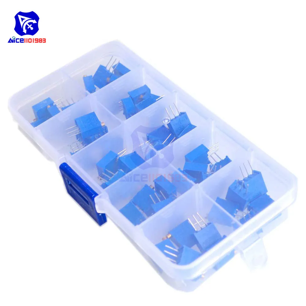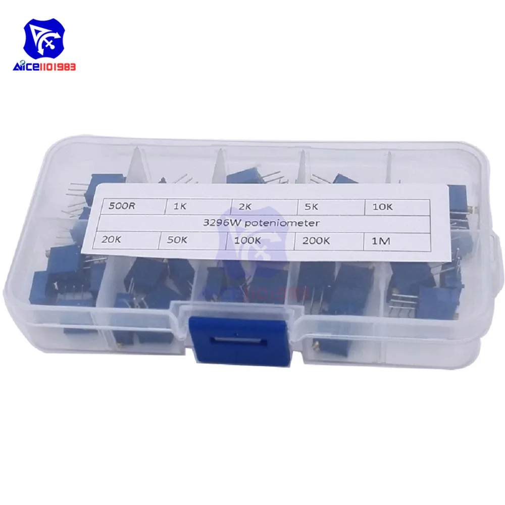 50 шт.лот 10 значений 3296 Вт многооборотный триммер потенциометр 3296 переменный резистор 500R 1K 2K 5K 10K 20K 50K 100K 200K 1M Ом