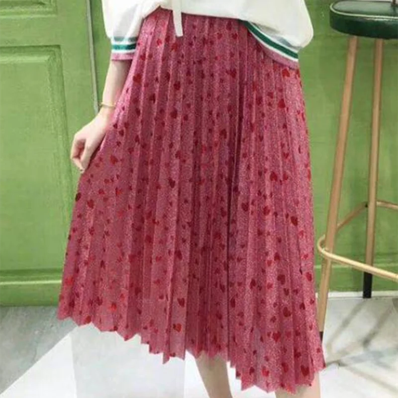 Женская плиссированная юбка, яркая шелковая юбка с высокой талией, элегантная юбка с принтом в виде сердца, Новое поступление на весну 2022