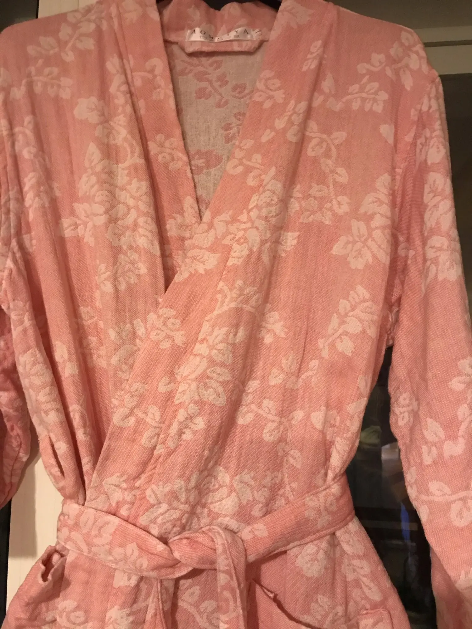 Халат очень симпатичный и качественно сшит и горячим людям, наверное, хорош будет, для меня оказался слишком тонким, хотелось что-то более плотное и тёплое и пояс почему-то где-то на пояснице пришит, хотя исправить это думаю легко. Всё же хочу сделать возврат и заказать другой